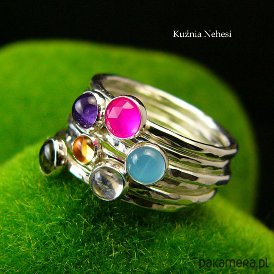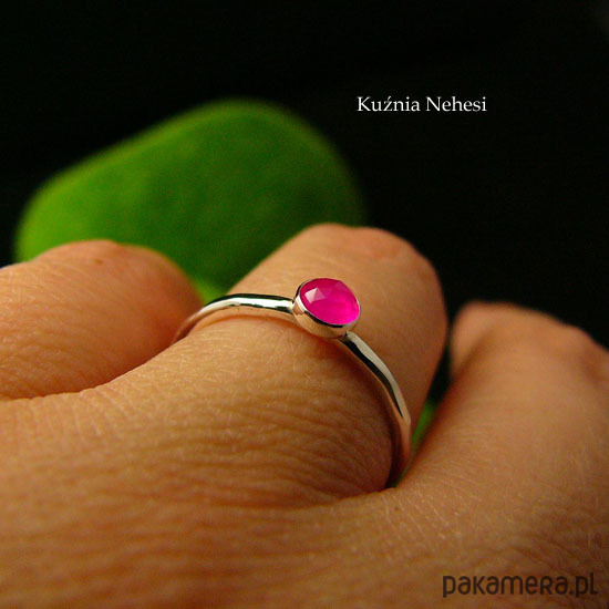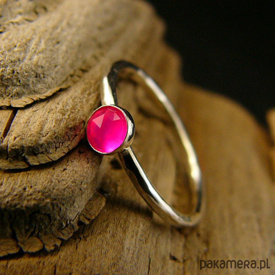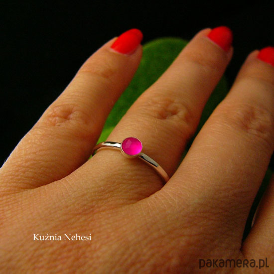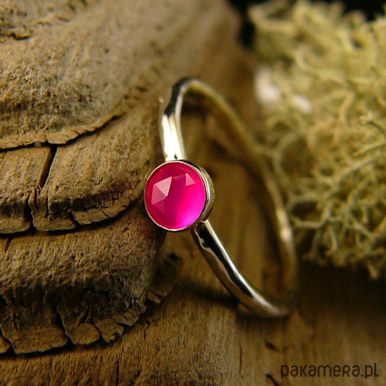 Pierścień Drobinek - Fuksjowy Agat Srebro