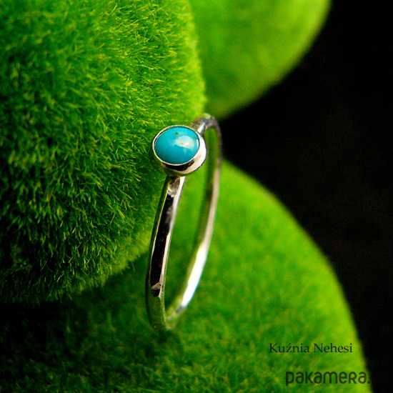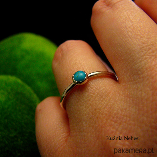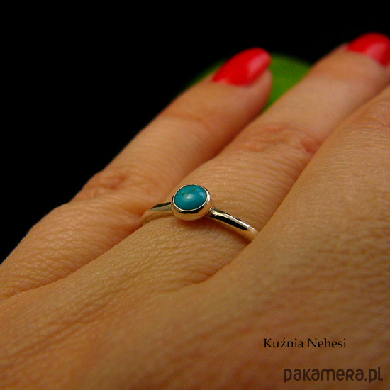 Delikatny pierścień wykonany ręcznie ze srebra próby 925. Sercem jest naturalny Turkus Arizona. Całość mocno wypolerowana, powierzchnia srebra fakturowana. Rozmiar obrączki 12 (16,6 milimetrów ). Chcesz mieć taki pierścień w swoim rozmiarze lub z innym minerałem, napisz do mnie, a wykonam go dla Ciebie na zamówienie. Jeśli nie znasz swojego rozmiaru, pomogę Ci go dopasować :)