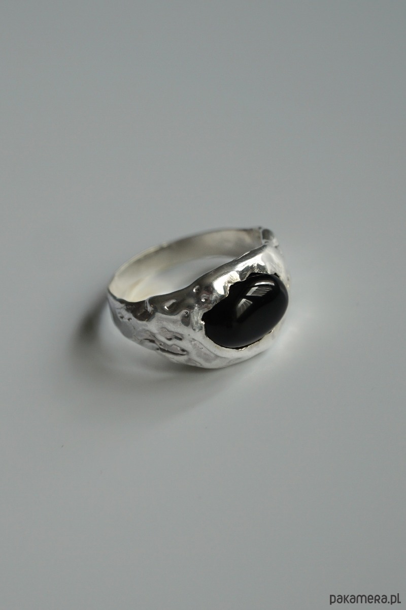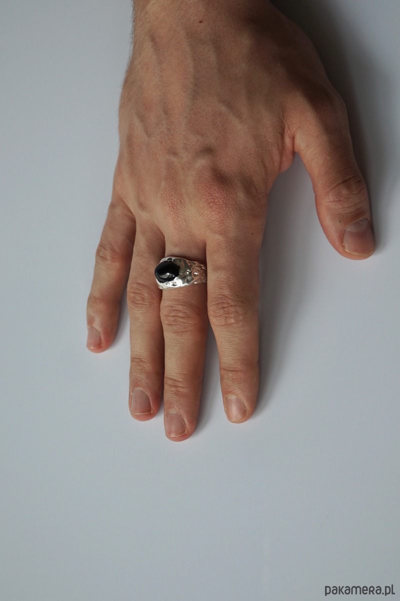 Srebrny sygnet STIGMATE z onyksem, którego faktura opowiada historię płynnego żywego srebra, zastygłego w swoim ostatnim ruchu. Chętnie kupowana zarówno przez kobiety jak i mężczyzn.