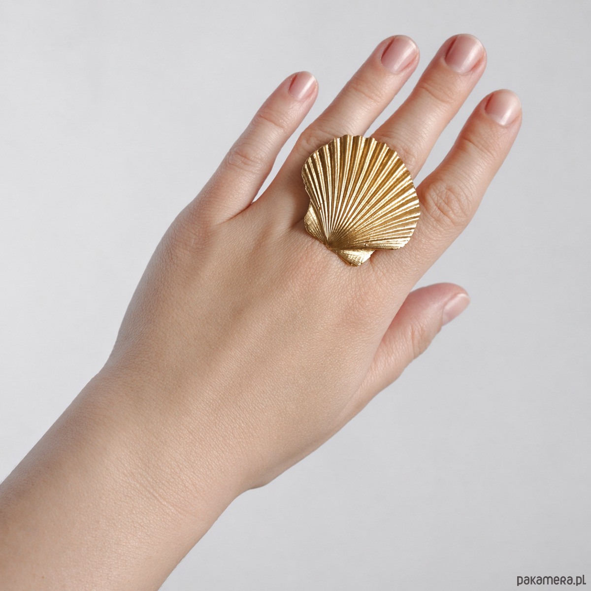 zjawiskowy pierścień - wykonany z prawdziwej muszli, która została przeze mnie pomalowana jednostronnie na złoty kolor.