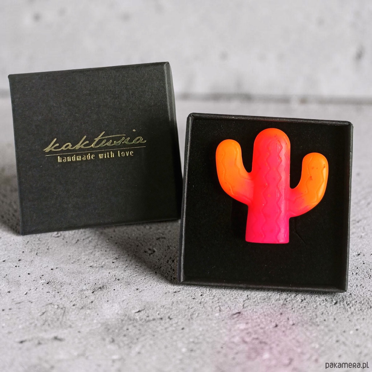 Niezwykle efektowny, niepoważny pierścionek - kaktus - w neonowych kolorach, z efektem ombre.