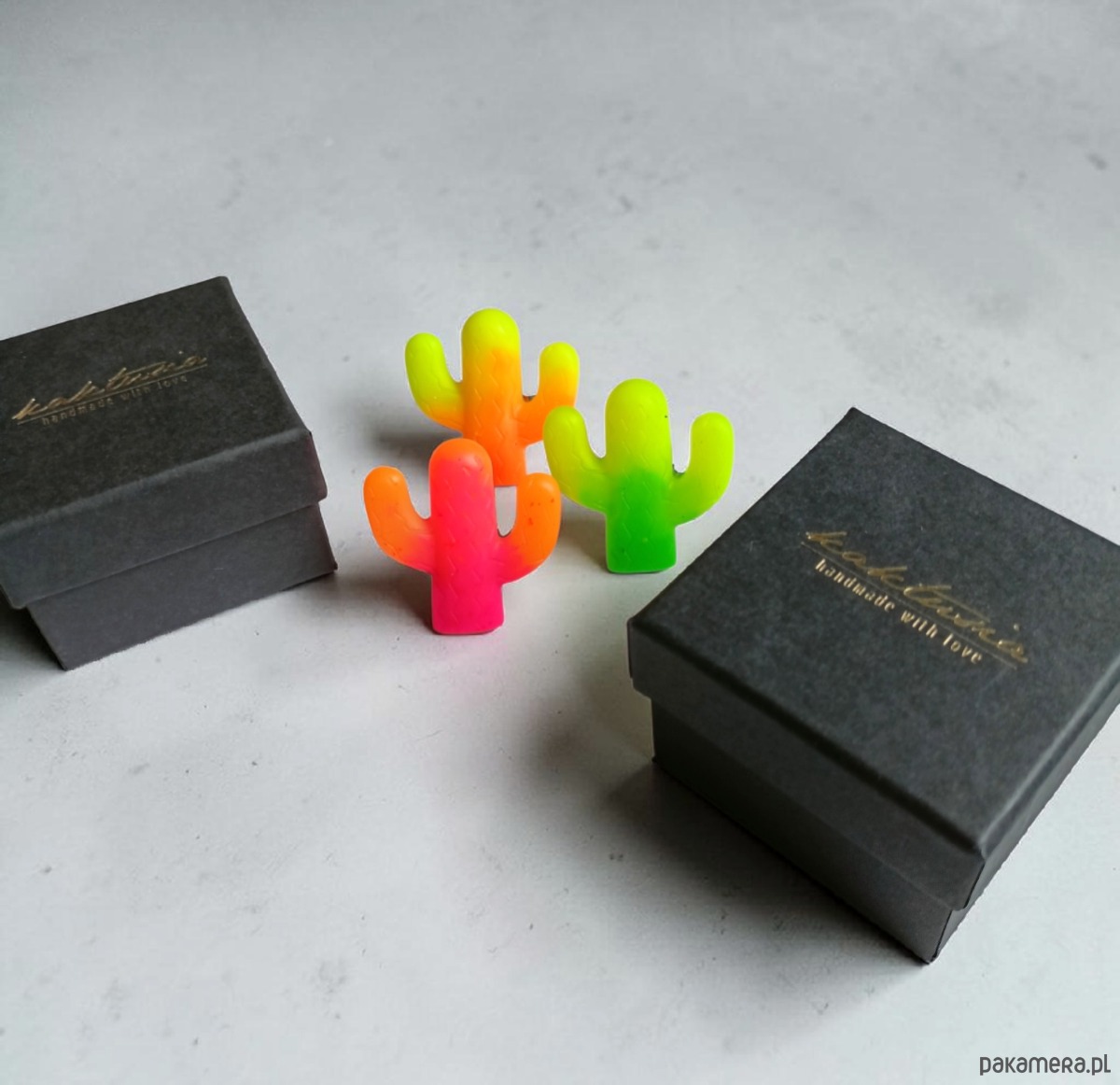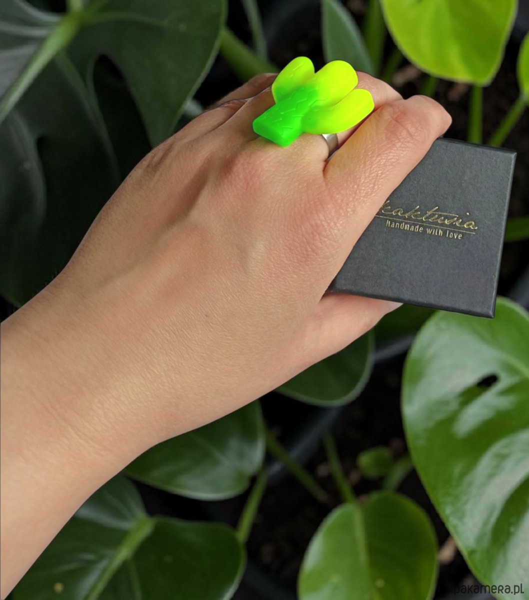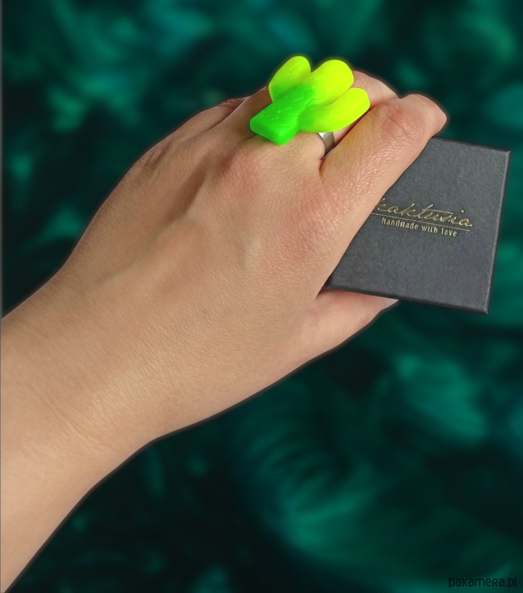 Niezwykle efektowny, niepoważny pierścionek - kaktus - w neonowych kolorach, z efektem ombre.