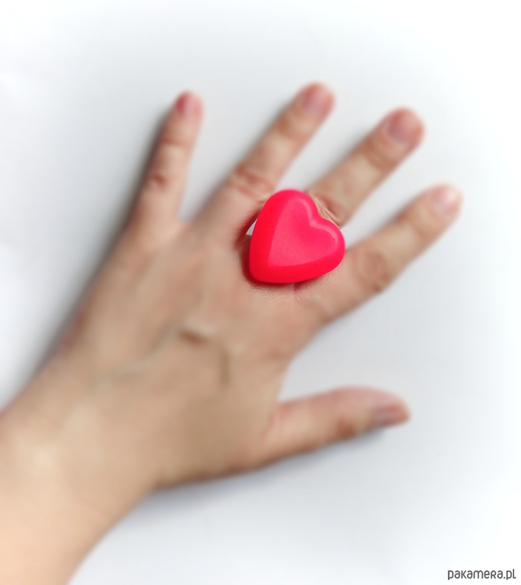 Duży, neonowy pierścień z żywicy - matowe serce NEON RED.