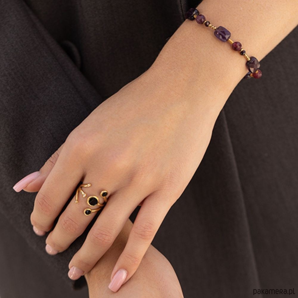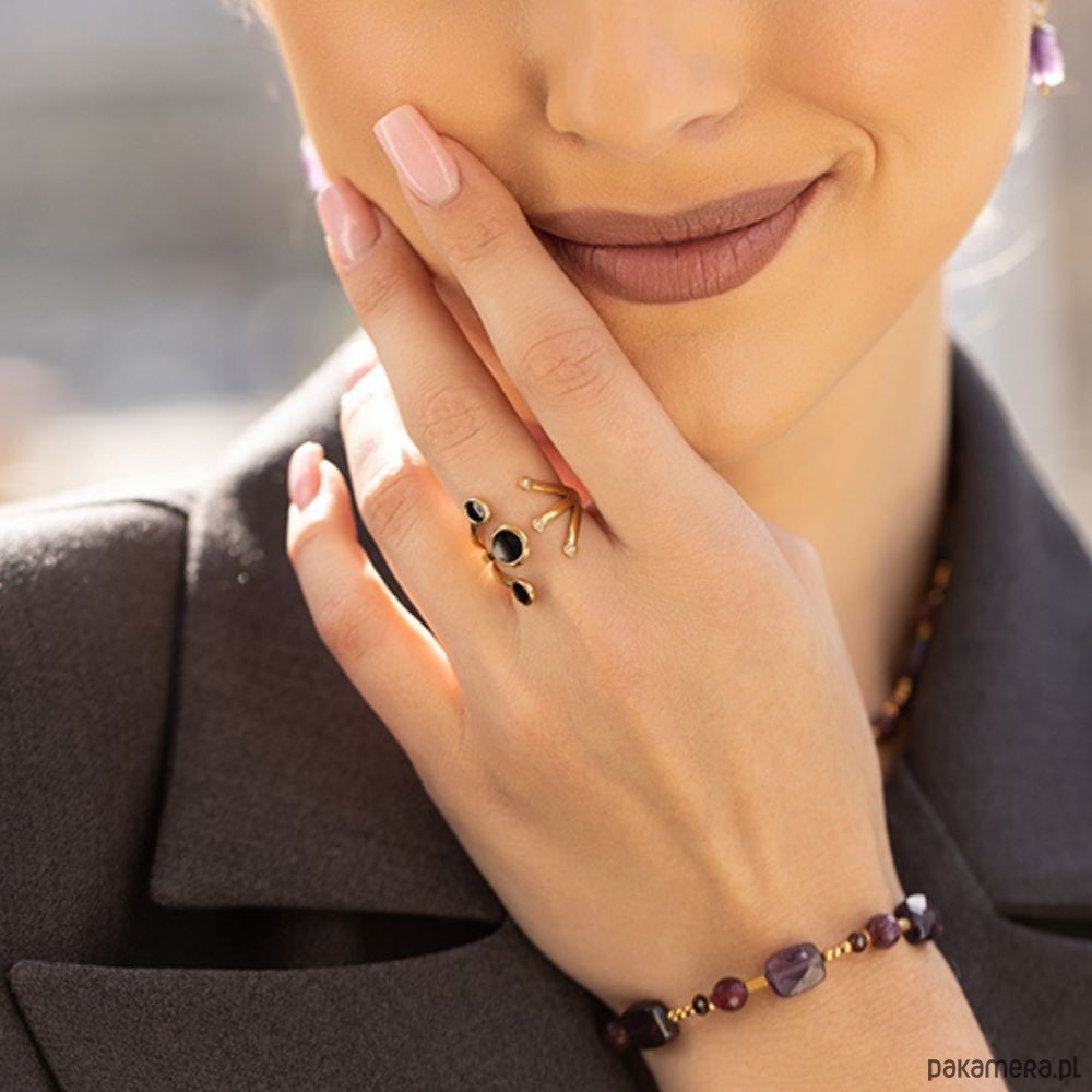 Pierścionek wykonany jest z wysokiej jakości pozłacanej stali szlachetnej, która jest materiałem antyalergicznym.Pozłocenie nie zmienia koloru podczas użytkowania.Dzięki regulowanemu rozmiarowi, pierścionek zawsze będzie pasował idealnie, niezależnie od okazji. To doskonały dodatek, który doda elegancji każdej stylizacji, będąc jednocześnie wyrazem Twojego unikalnego stylu.