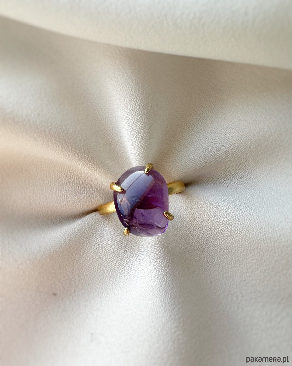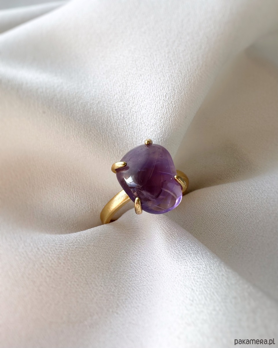 Unikatowy pierścionek z ametystu - oszlifowana bryłka w okuciu złotego mosiądzu🌟