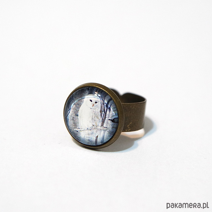 Pierścionek - Biała sowa - brąz