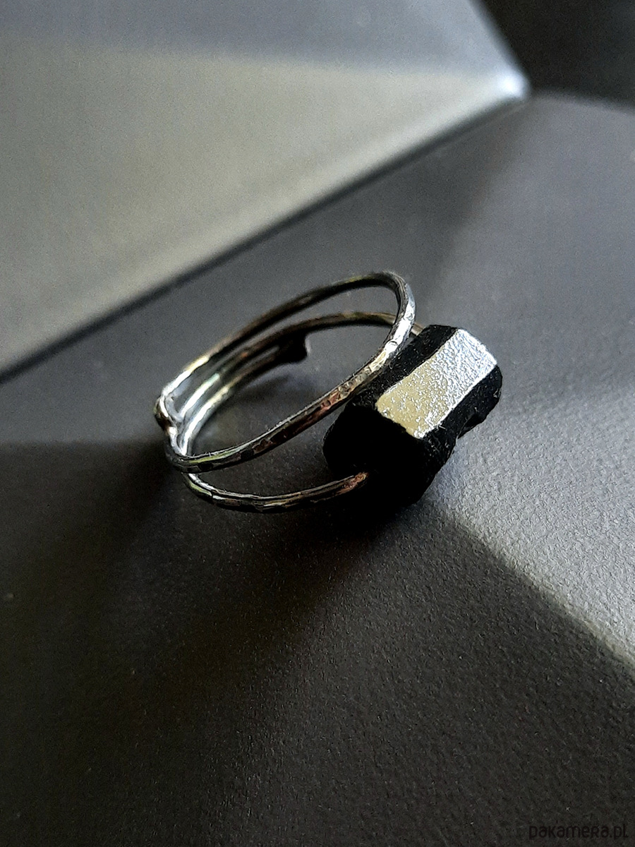 Pierścionek BLACK jest surowy, prosty, czarujący. Górę pierścionka zdobi matowy naturalny czarny turmalin - silny kamień ochronny. Blokuje on złe energie, uroki, zaprowadza harmonię wewnętrzną, intensywnie wpływa na kreatywność.