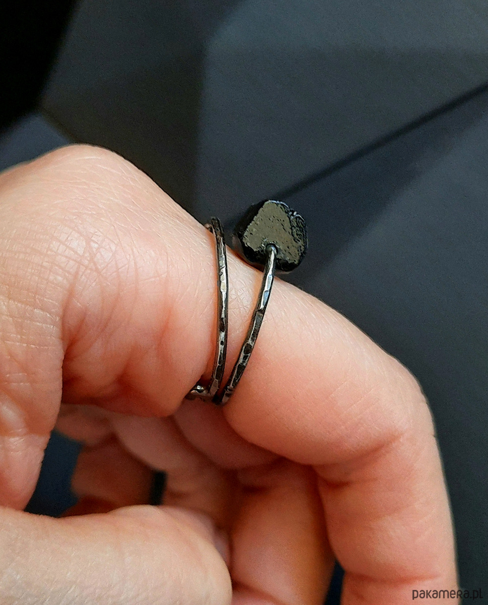 Srebrną obrączkę ozobiłam texturą i poczerniłam.