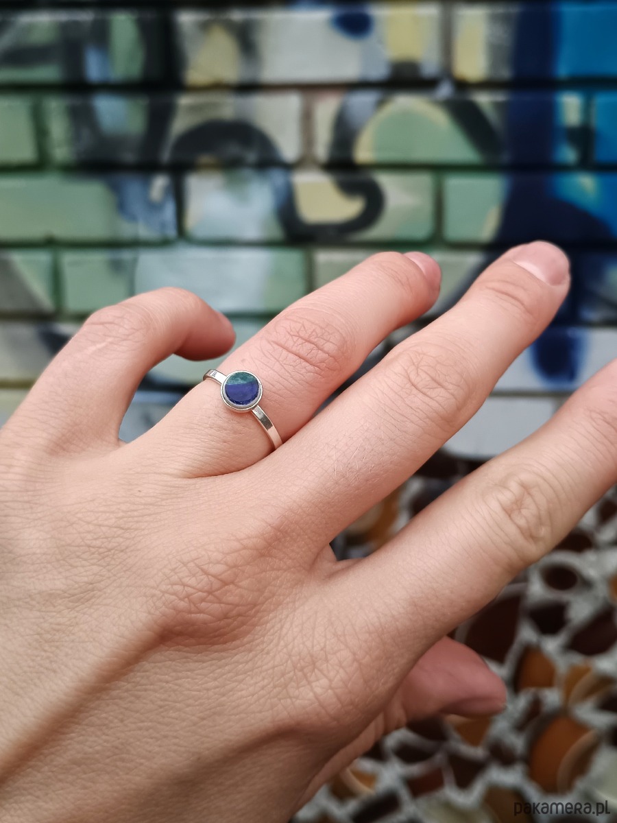 Ceramika w Bolesławcu i jego okolicach produkowana była już w XIV wieku. Do dziś najważniejszy surowiec, czyli glina wydobywany jest na miejscu, a tradycja wyrobu naczyń ceramicznych, rozwijana i kultywowana przez wieki - trwa. Bolesławiec jako marka, tworzona przez kilkadziesiąt różnych manufaktur, znana jest na całym świecie, a charakterystycznego wzoru w kobaltowe kropki nie sposób pomylić z żadnym innym. Co najbardziej wyróżnia Bolesławiec, to że szkliwo nakładane jest ręcznie, za pomocą stempelków z gąbki. Oto pierścionek, który wykonałam z fragmentu stłuczonego talerza z Bolesławca. Kawałek stłuczki oszlifowałam w okrągły kształt i połączyłam z bazą wykonaną ze srebra próby 925 w rozmiarze 12. Średnica "oczka" - elementu ceramicznego: 6 mm. Unikat - każdy z moich wyrobów występuje w jednym egzemplarzu. Upcykling - nie reprodukuję wykorzystywanych wzorów, niczego nie domalowuję - wykorzystuję wyłącznie oryginalne naczynia i motywy, które się na nich znajdują. Tym samym, stłuczce z odzysku nadaję nowe życie.