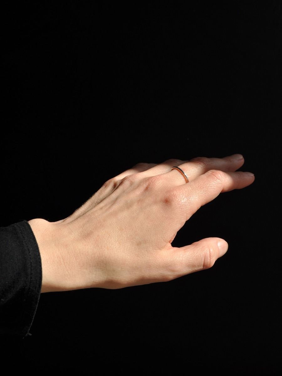 Delikatny pierścionek w formie obrączki wykonany jest ręcznie z wtórnie przetworzonego srebra* Model uniwersalny dla osób ceniących minimalizm i prostą formę.