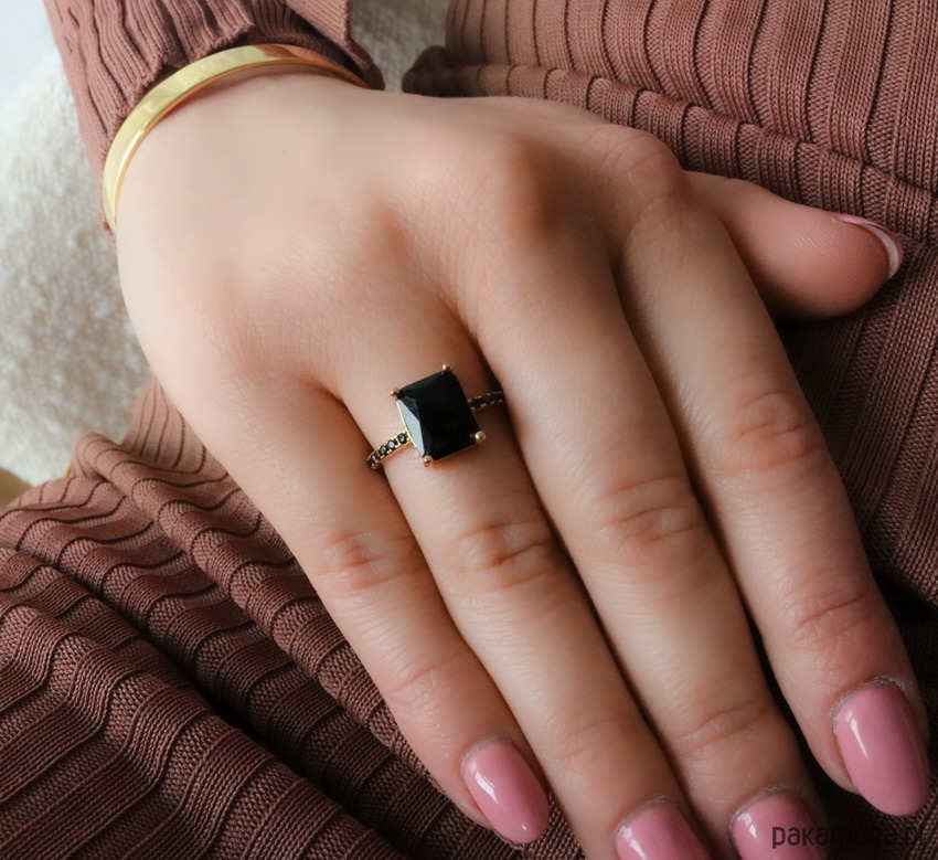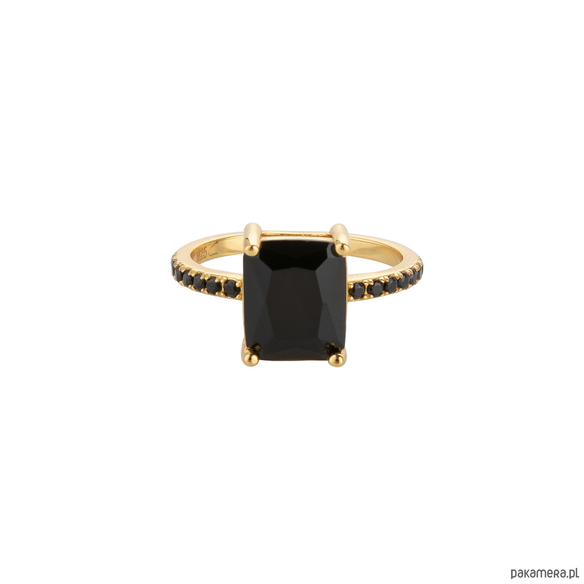 Pierścionek ROYAL PRINCESS z czarnymi cyrkoniami - srebro 925 pozłacane: