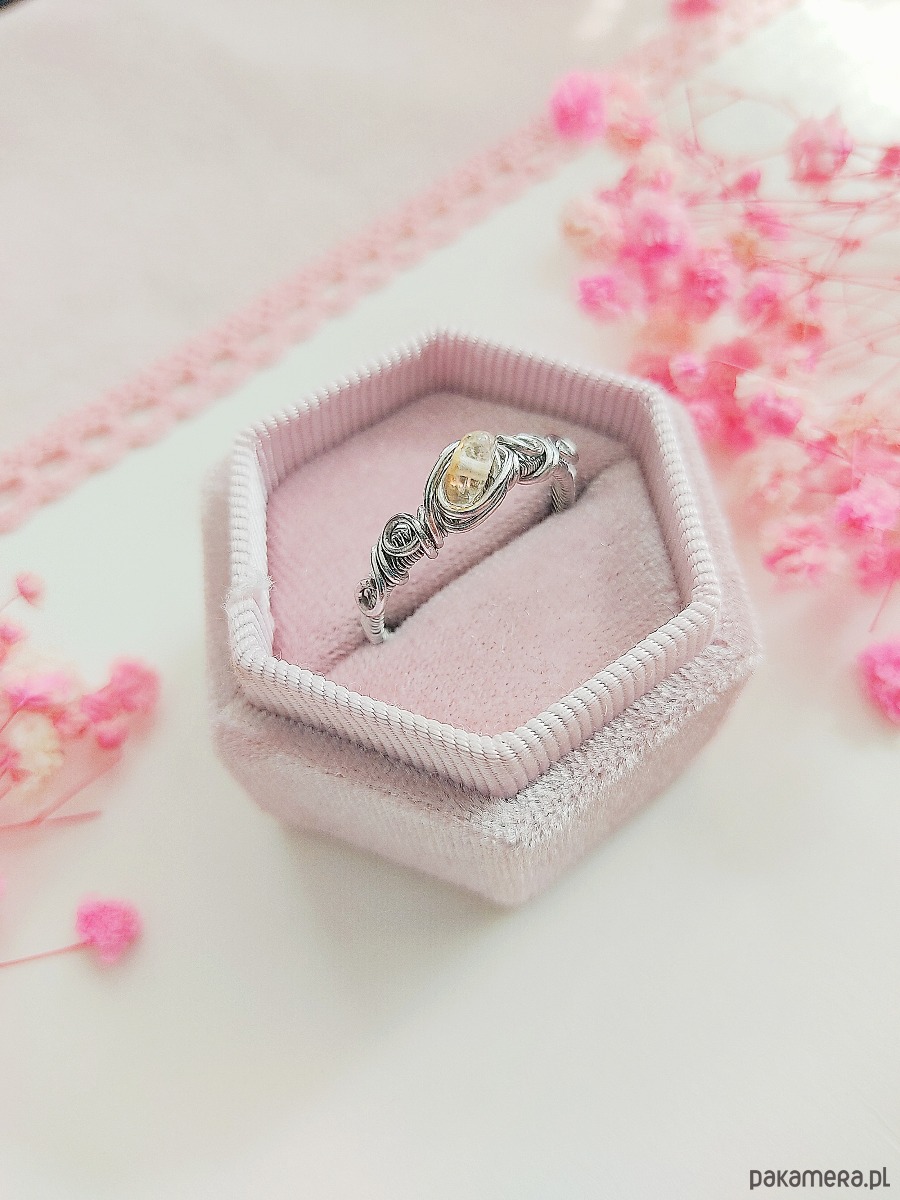 Pierścionek Cytryn zapakowany w ozdobne pudełko.