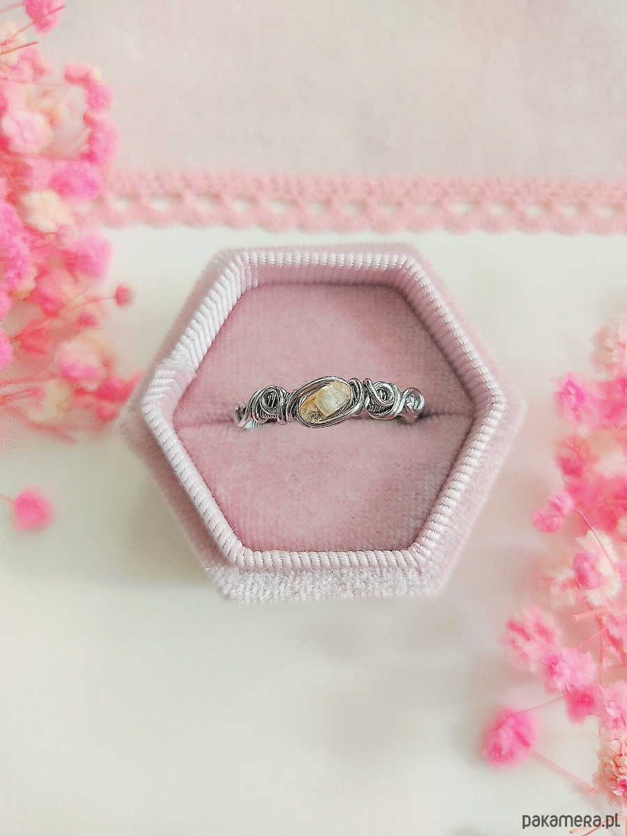 Pierścionek z cytrynem wykonany ze stali chirurgicznej metodą wire wrapping to wyjątkowa biżuteria handmade, która łączy elegancję z naturalnym pięknem kamieni szlachetnych. Kamień cytryn, od wieków kojarzony z energią słońca, obfitością i pozytywną energią. Jego złocisto-żółta barwa sprawia, że biżuteria z cytrynem przyciąga spojrzenia i dodaje blasku każdej stylizacji.