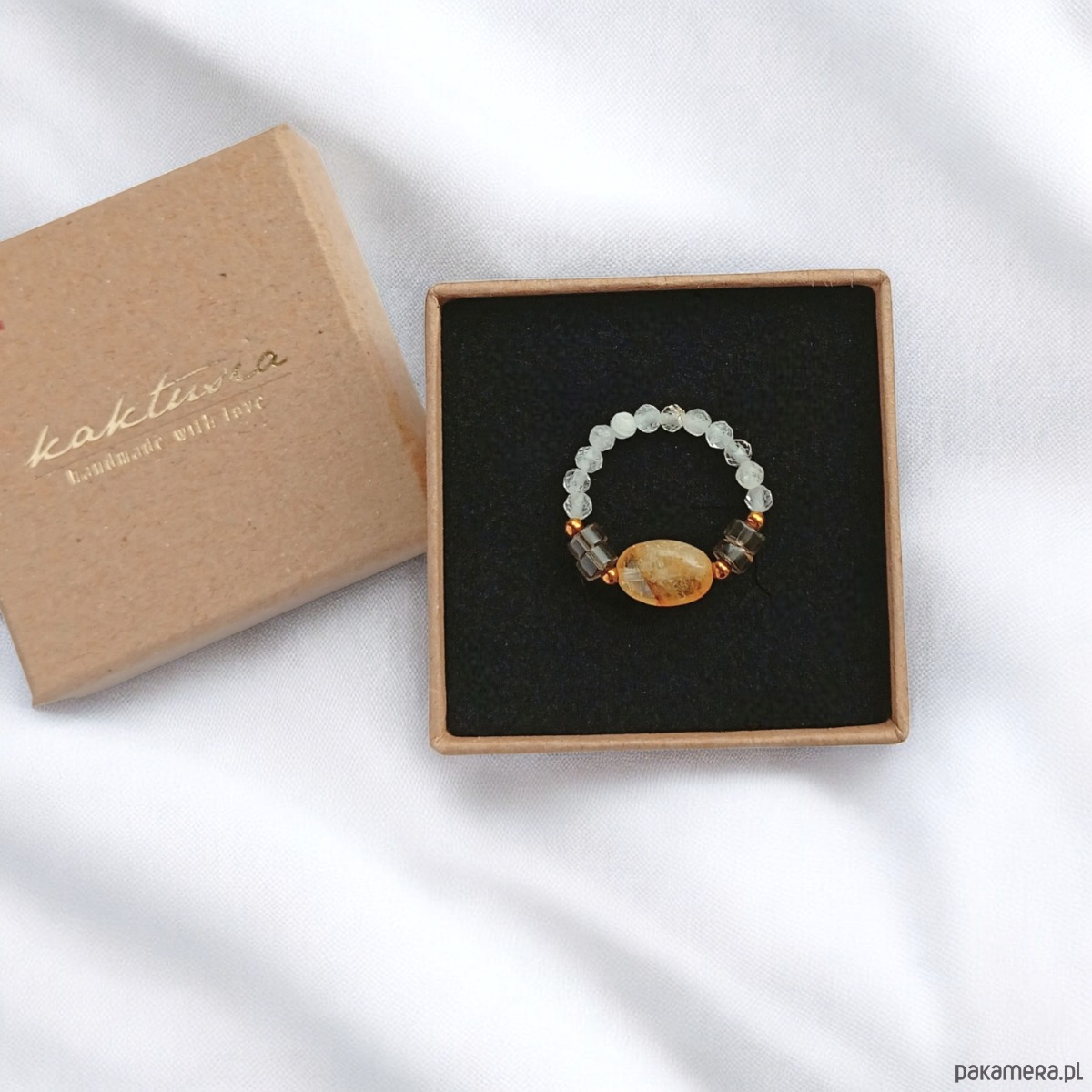 Pierścionek DOBROBYT - amulet - cytryn, kwarc dymny, kryształ górski