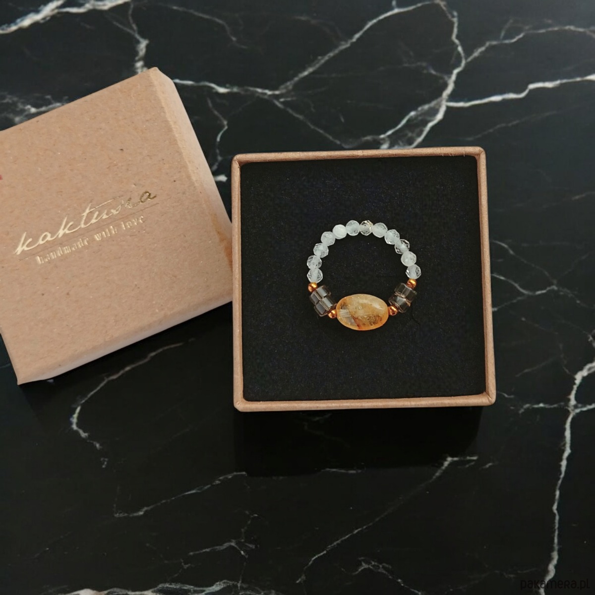 Pierścionek DOBROBYT - amulet - cytryn, kwarc dymny, kryształ górski