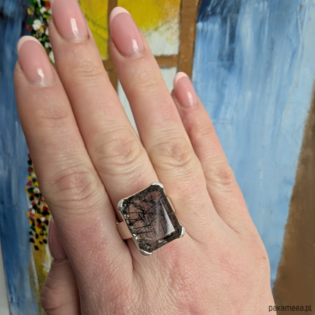 Pierścionek dostojny Kwarc turmalinowy