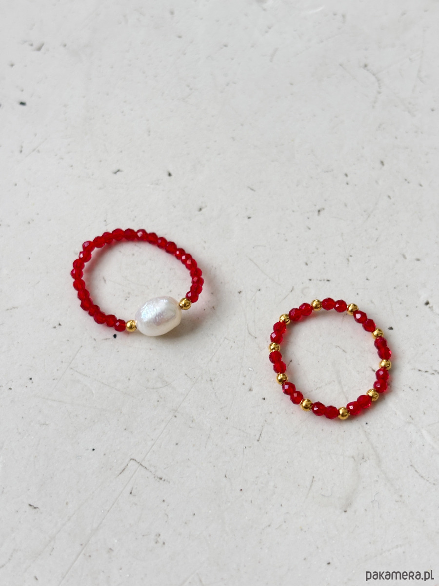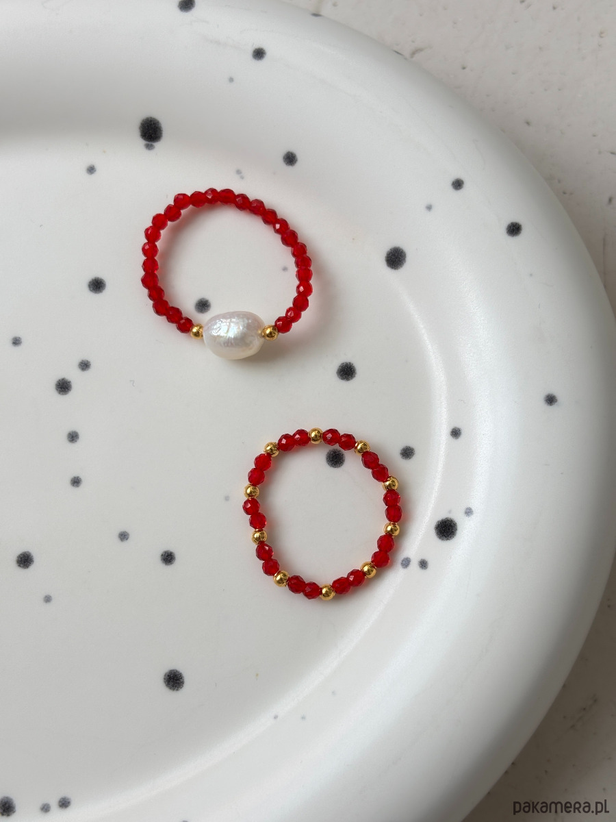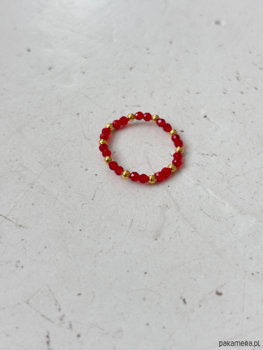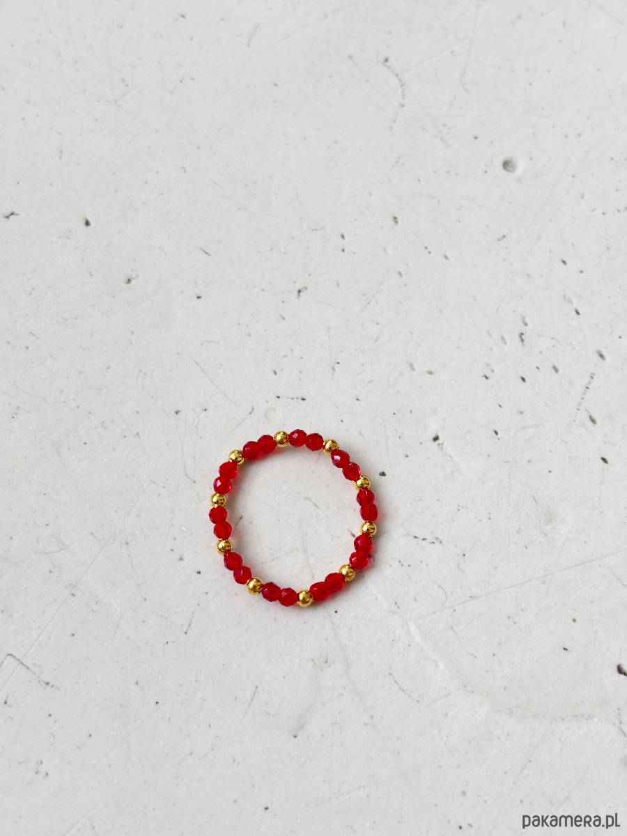 Pierścionek elastyczny wykonany jest na gumce jubilerskiej z użyciem agatu czerownego i pozłacanych przekładek.