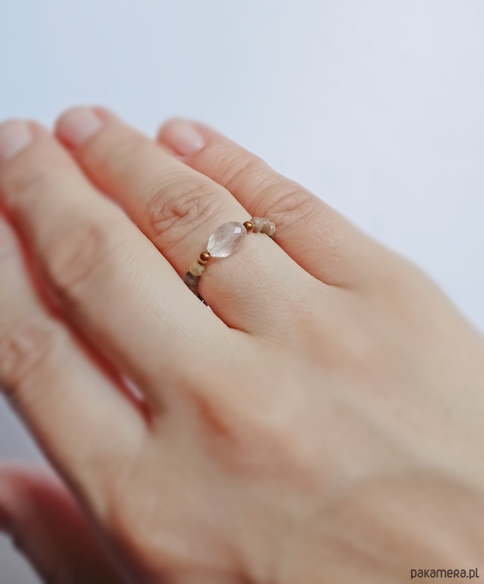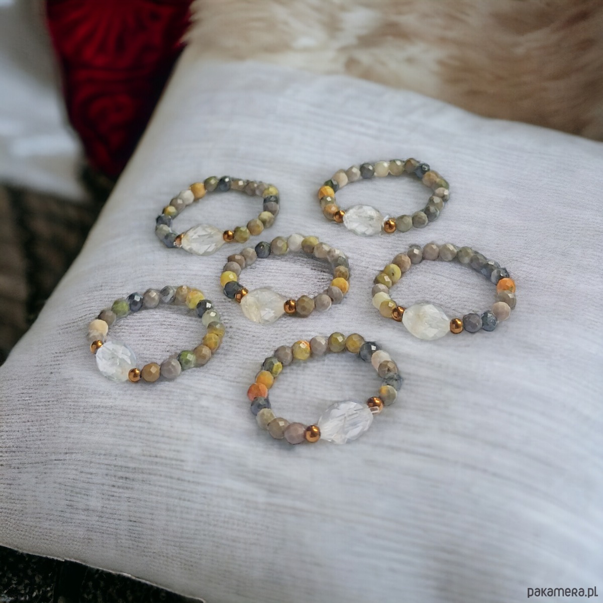 Pierścionek elastyczny: cytryn, jaspis trzmieli
