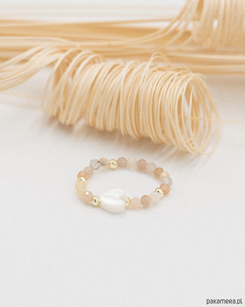 Kamienie nawleczone są na żyłkę jubilerską, dzięki czemu pierścionek delikatnie się rozciąga.