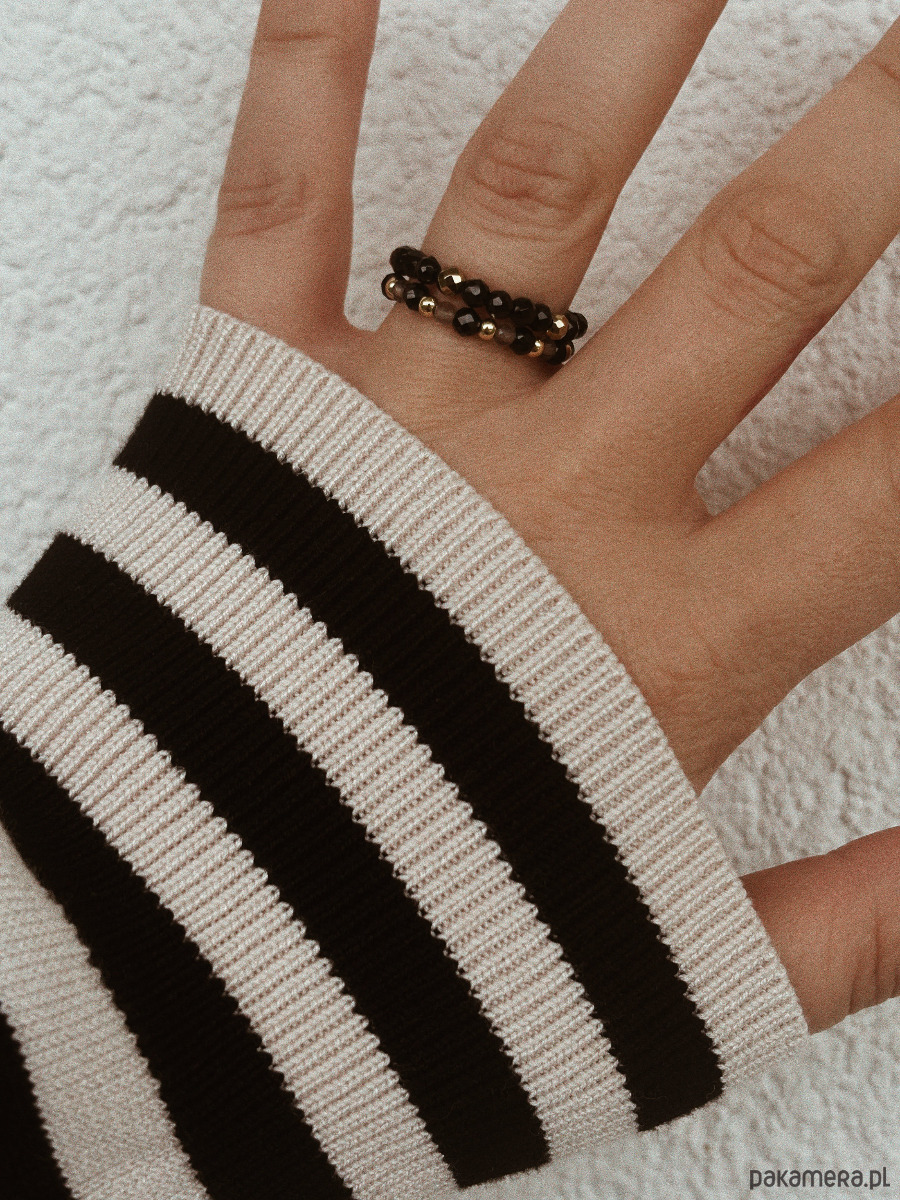 Pierścionek elastyczny Kwarc Dymny i Onyks