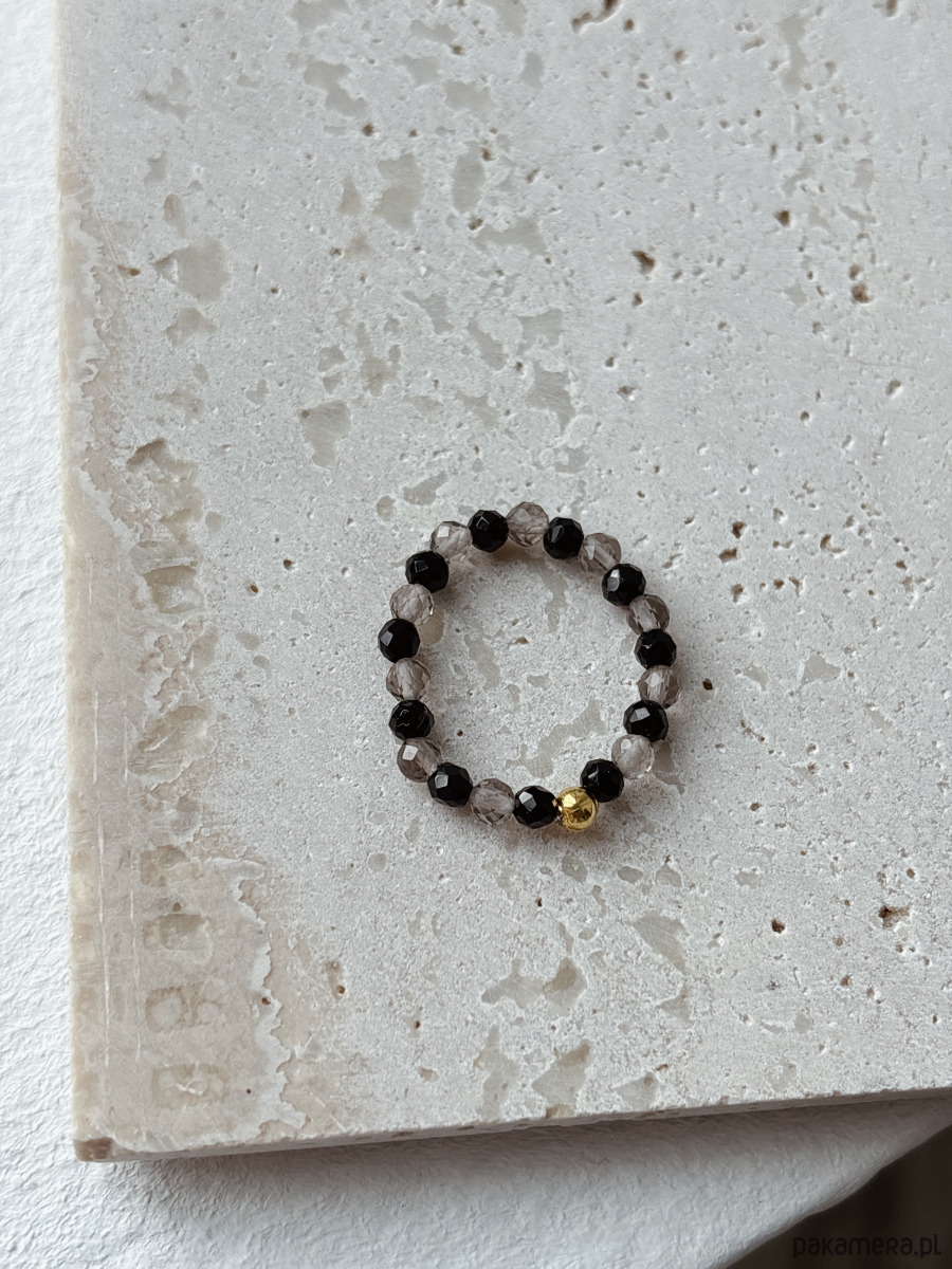 Pierścionek elastyczny Kwarc Dymny i Onyks