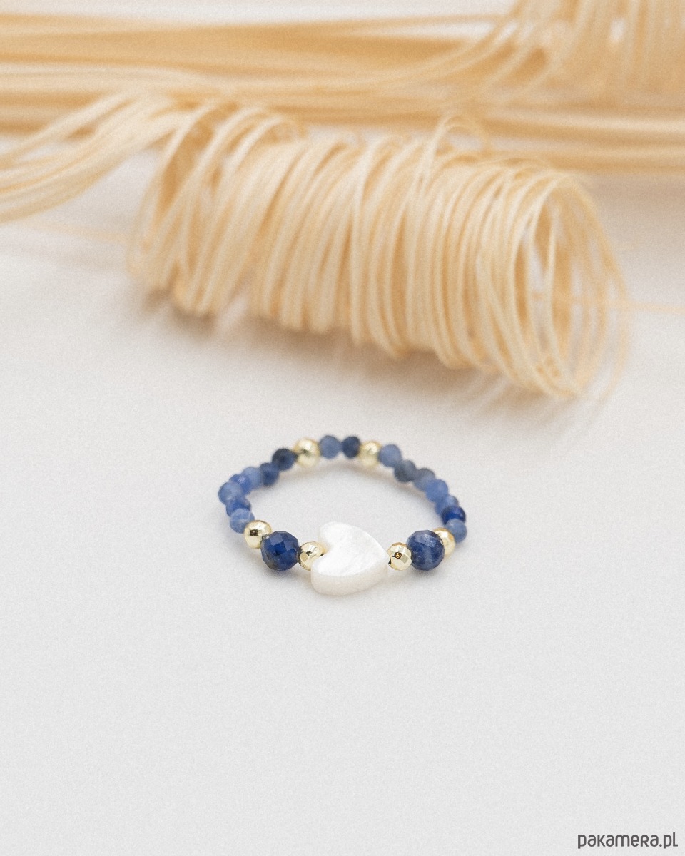 Kamienie nawleczone są na żyłkę jubilerską, dzięki czemu pierścionek delikatnie się rozciąga.