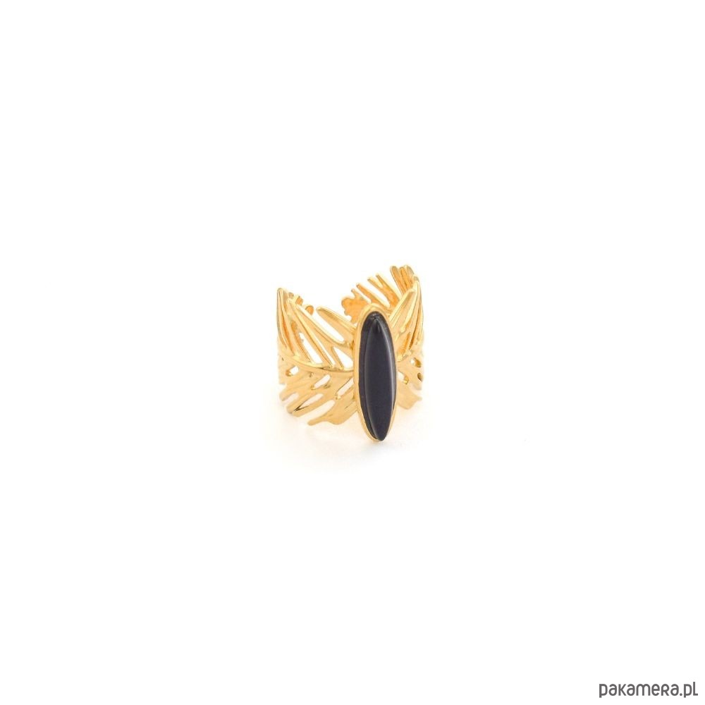 Pierścionek wykonany jest z wysokiej jakości pozłacanej stali szlachetnej z dodatkiem łezki Onyksu, która jest materiałem antyalergicznym.Pozłocenie nie zmienia koloru podczas użytkowania.ONYKS to kamień sukcesu. Jego energia wzmacnia wytrzymałość i odporność przy wykonywaniu trudnych, złożonych zadań.