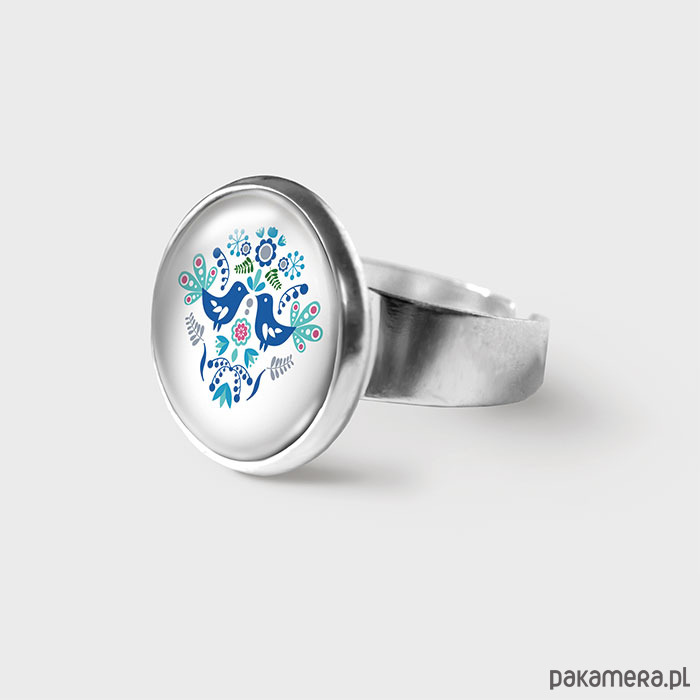 Grafika ukryta w prostym pierścieniu pod osłoną przeźroczystego półokrągłego szkiełka.