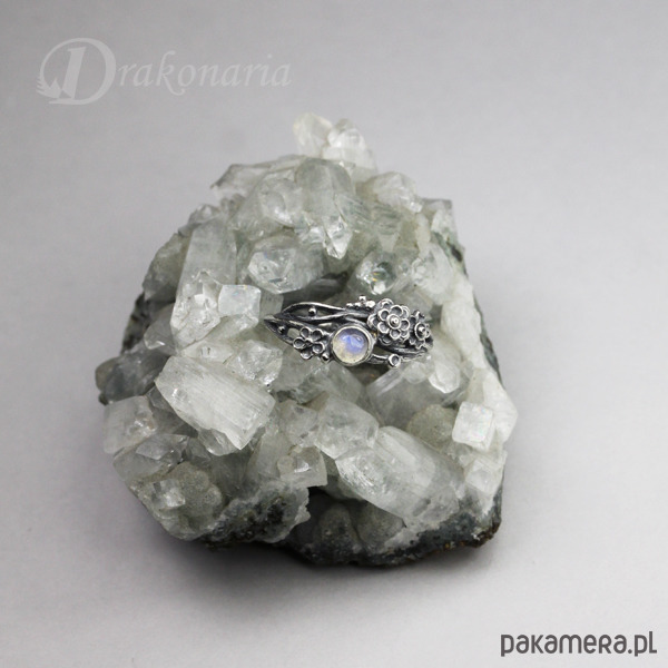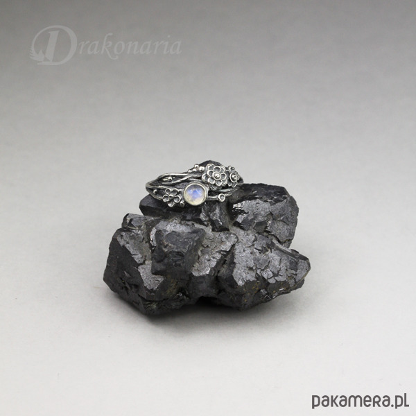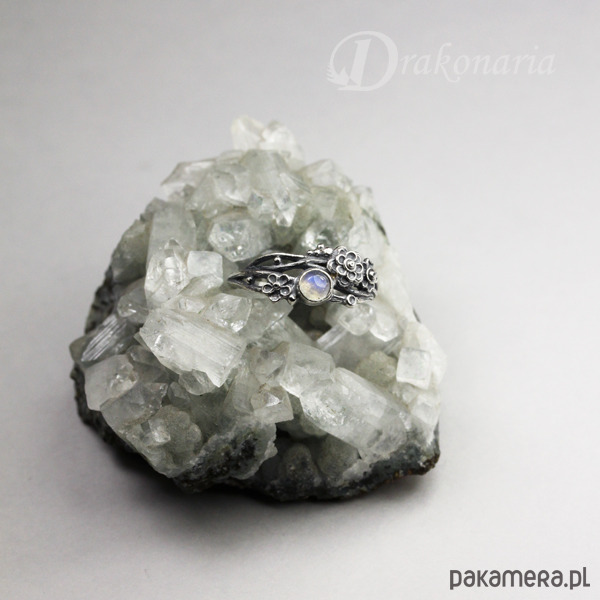 Pierścionek Gałązki kwiatowe - z kamieniem księżycowym