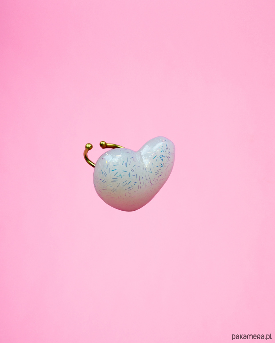 Pierścionek GIGA HEART mleczne konfetti