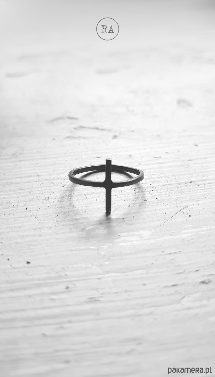 Obrączka szer. ok. 1 mm, krzyżyk: belka o długości ok. 1 cm.