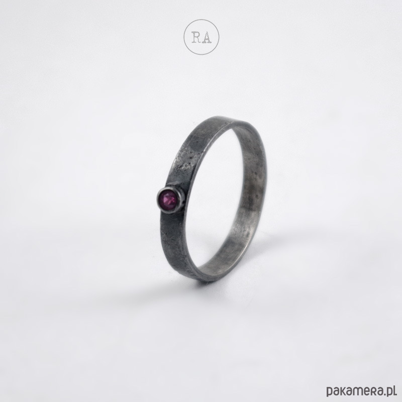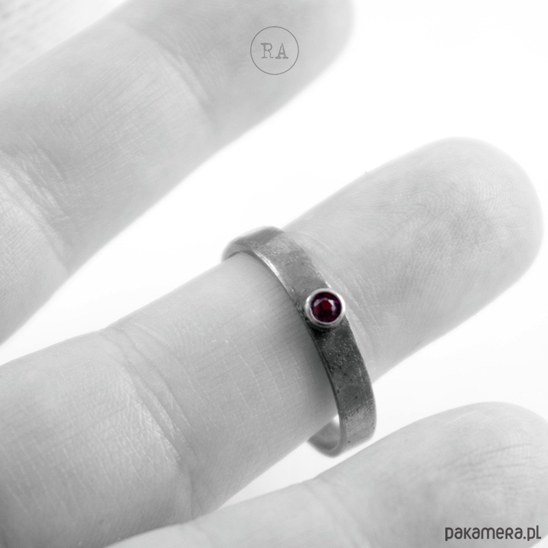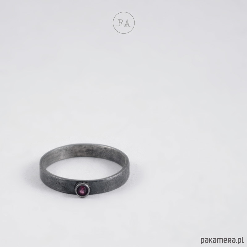 Pierścionek z naturalnym pięknym granatem wykonany ze srebra, oksydowany,