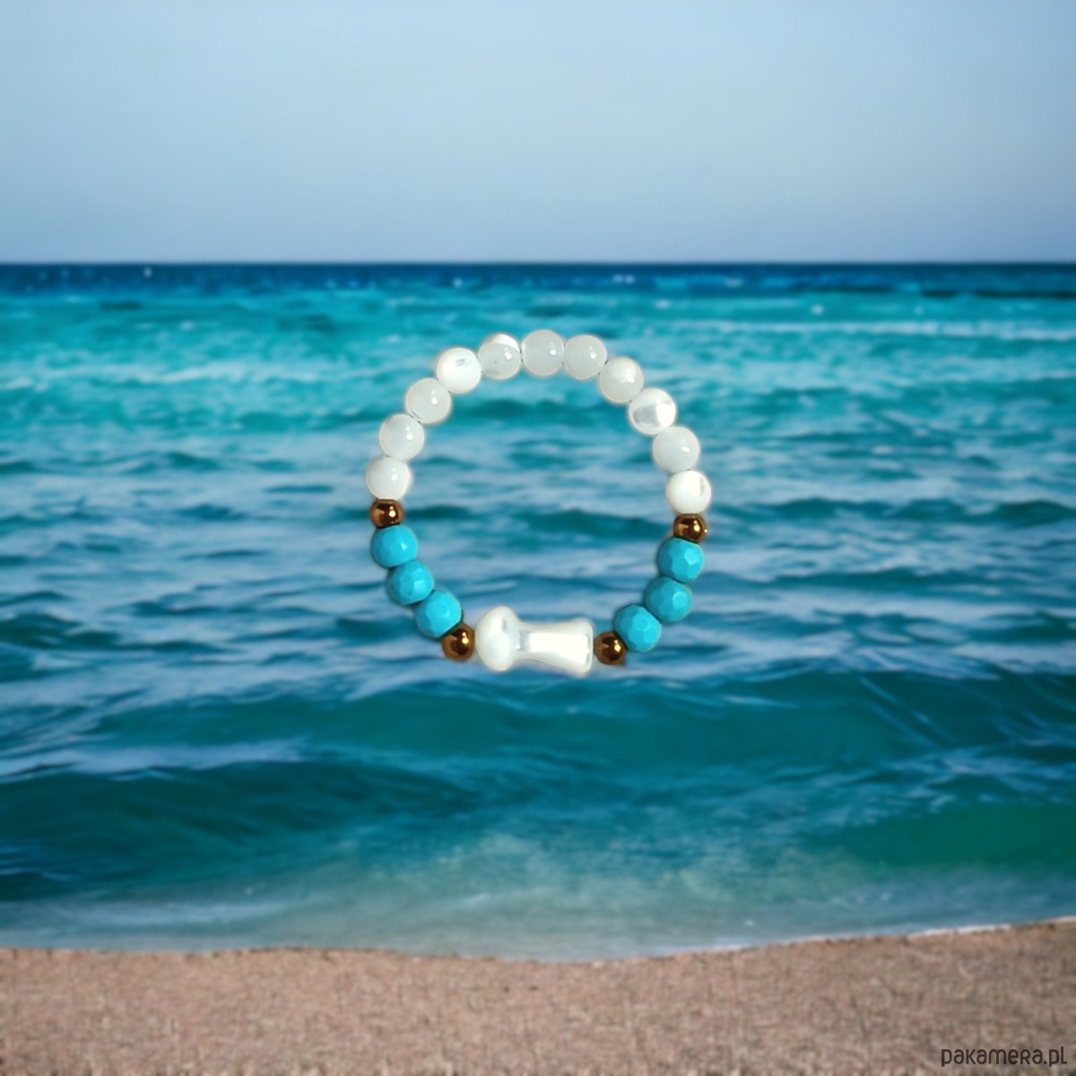 Pierścionek :: GRZYBEK :: magnezyt, muszla, hematyt