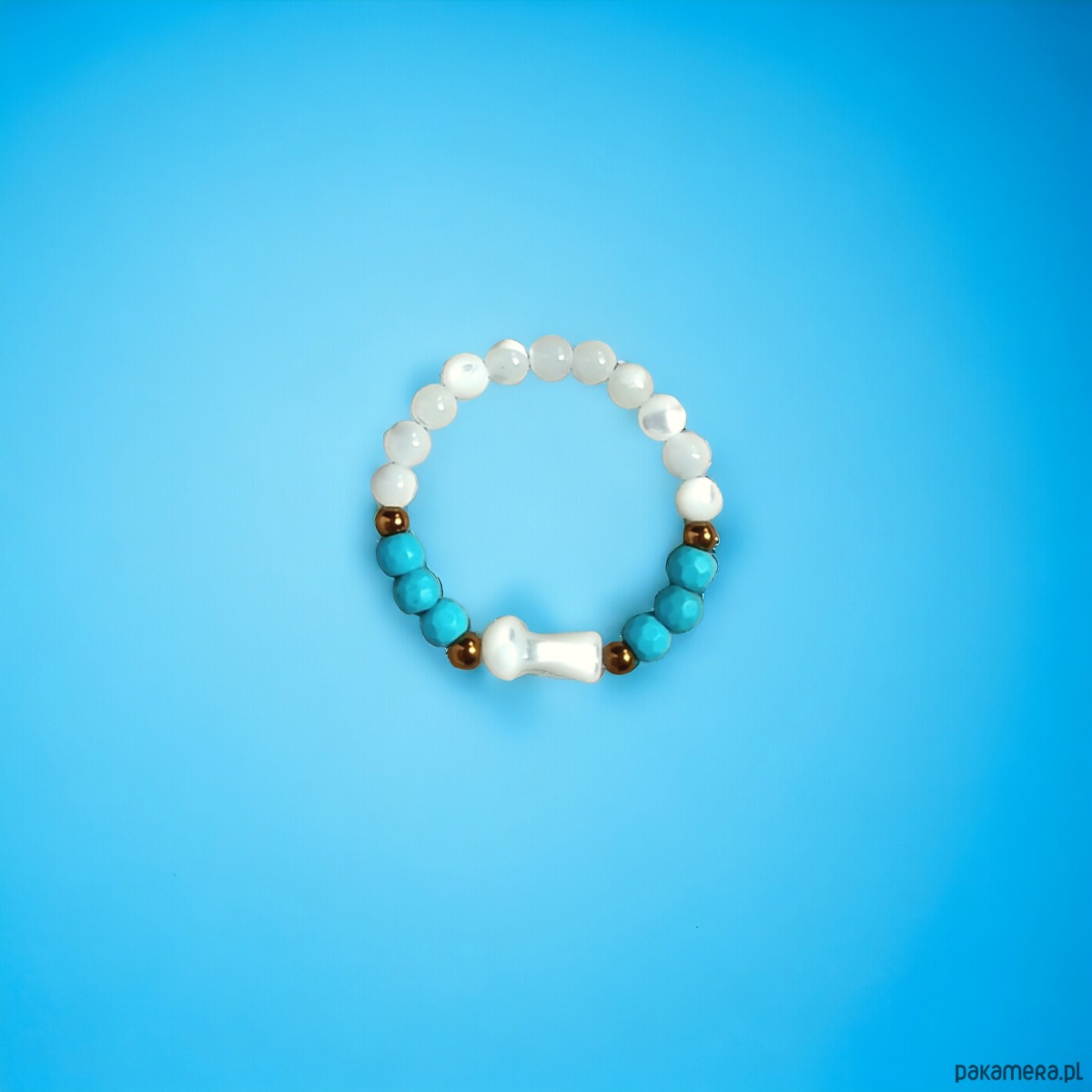 Pierścionek : GRZYBEK : magnezyt, muszla, hematyt
