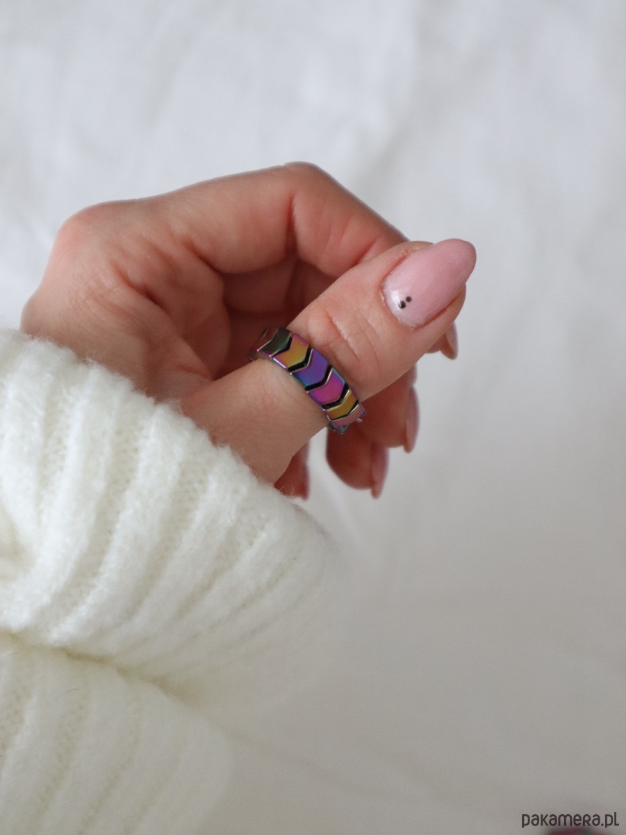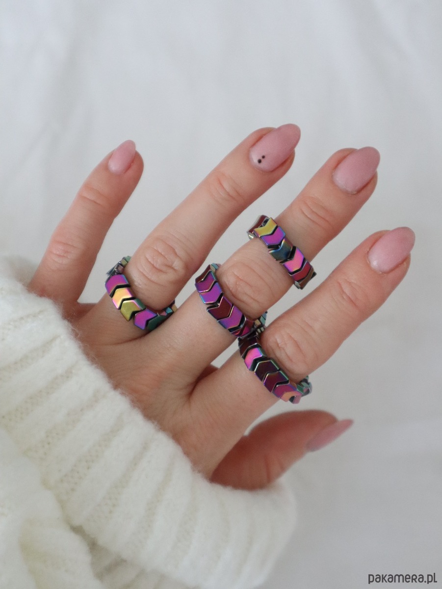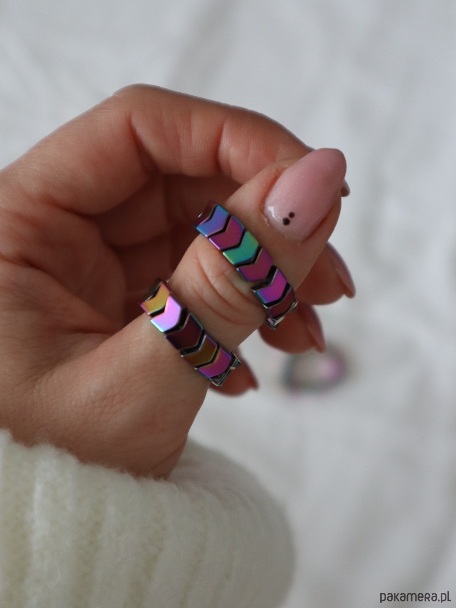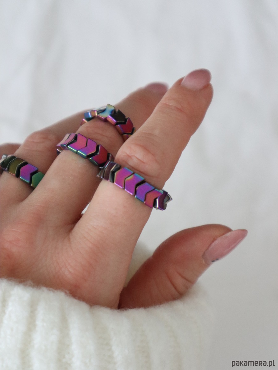 Piękny pierścionek z kamieniami hematytu o wyjątkowym kształcie pagonów , odcień oliwkowej zieleni i fioletu