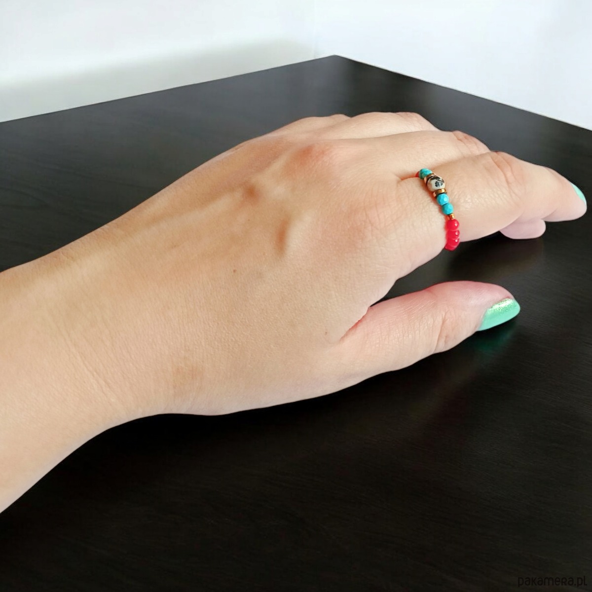 Pierścionek : INDIA : koral, jaspis, magnezyt, hematyt