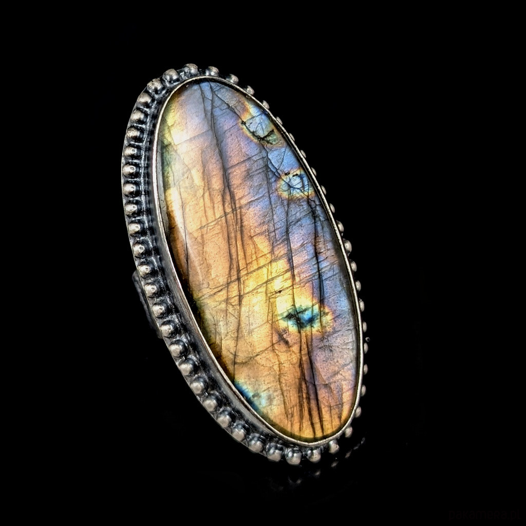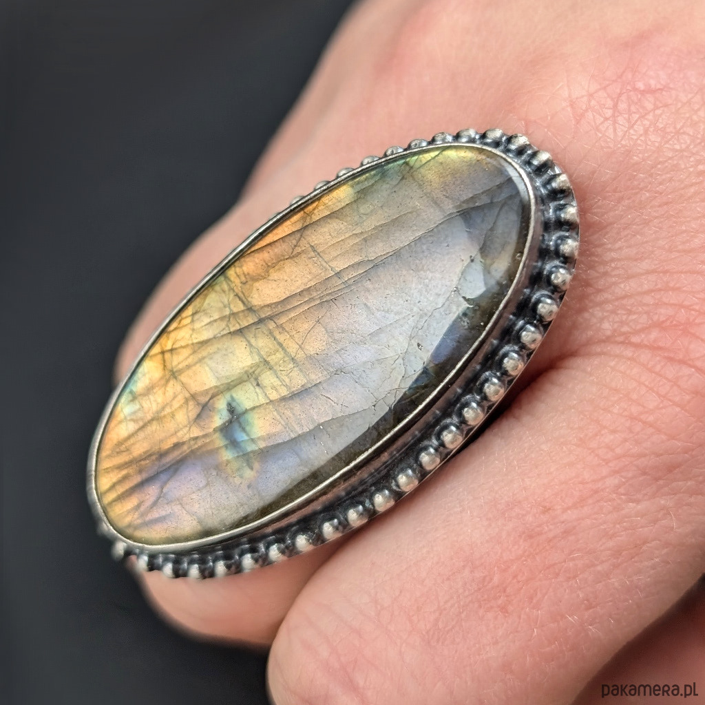 Pierścionek jesienny zachód abradorytu
