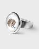 Grafika ukryta w prostym pierścieniu pod osłoną przeźroczystego półokrągłego szkiełka.