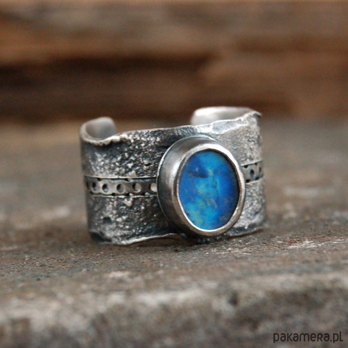 Srebrny pierścionek z kamieniem księżycowym. Srebro oksydowane. Wielkość kamienia 0,7 - 0,8 cm, szerokość obrączki 1,3 cm, rozmiar regulowany. Przy zamówieniu proszę o podanie rozmiaru, pierścionek zostanie ustawiony.