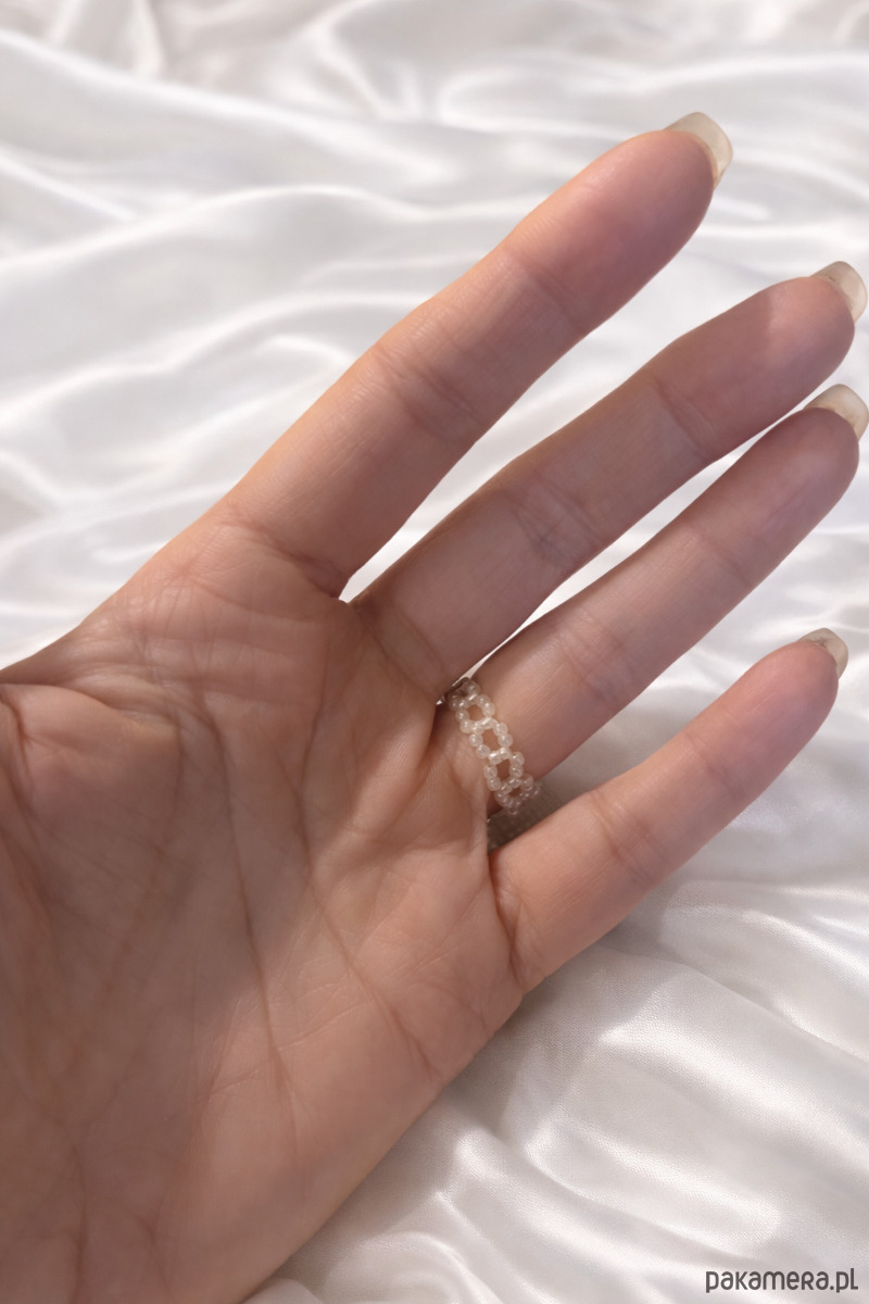 Ten pierścionek to mała biżuteryjna forma haute couture – delikatna, a jednocześnie wyrazista. Inspirowany kobiecą elegancją i rzemiosłem jubilerskim, został ręcznie wykonany z japońskich szklanych koralików Miyuki o wielkości 1 mm, znanych z perfekcyjnej regularności i subtelnego połysku.