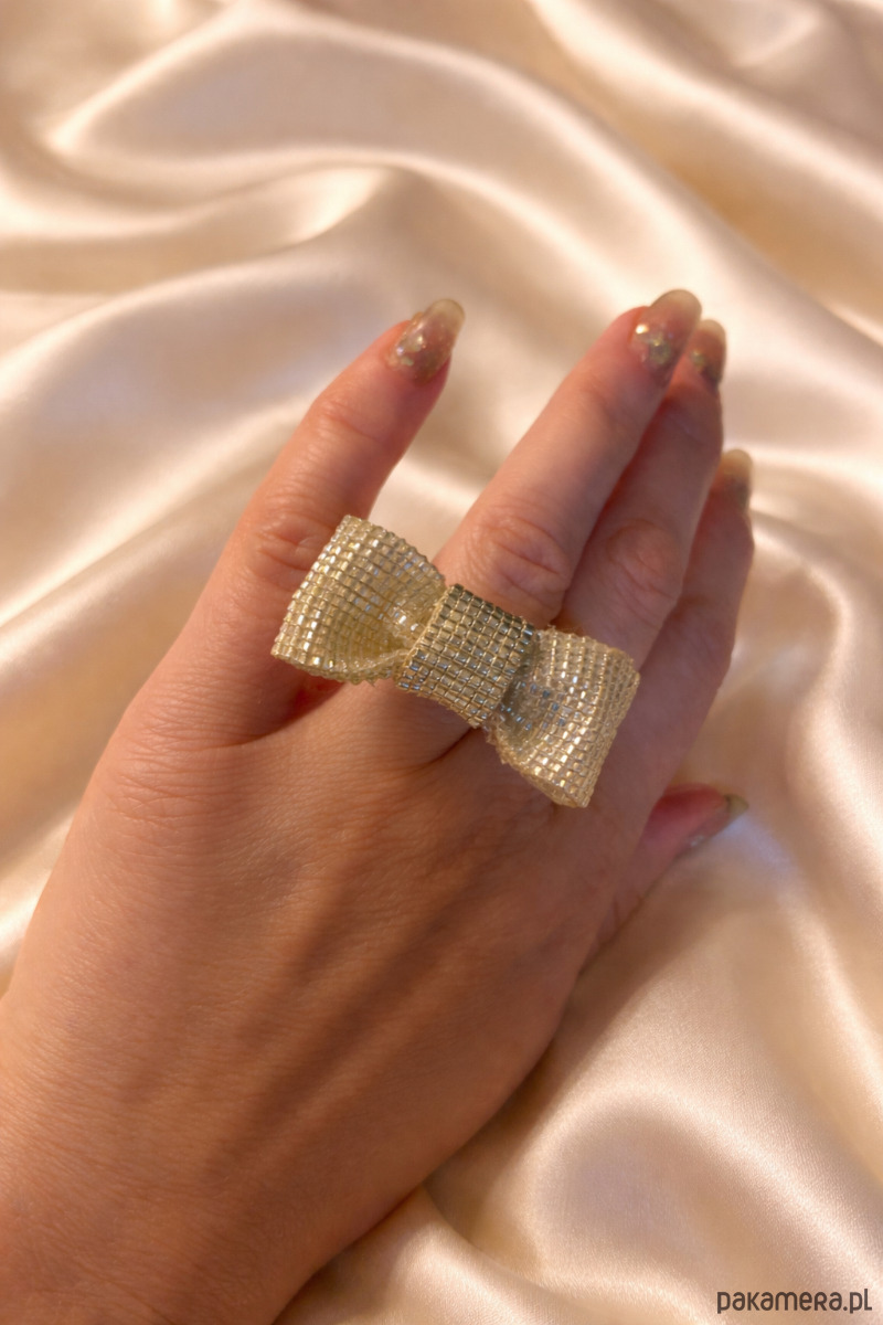 Pierścionek koktajlowy kokarda z koralików szklanych