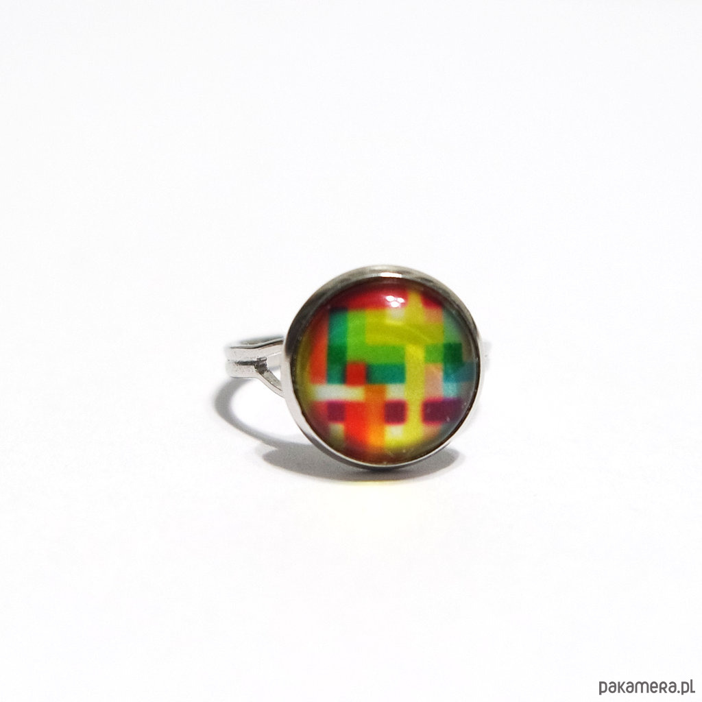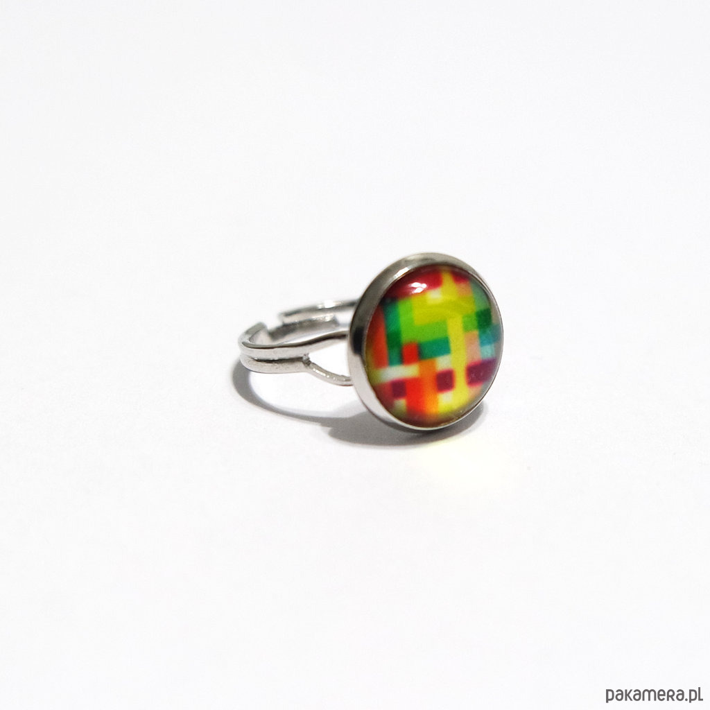 Grafika ukryta w prostym, eterycznym pierścionku, pod osłoną przeźroczystego półokrągłego szkiełka.