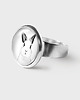 Grafika ukryta w prostym pierścieniu pod osłoną przeźroczystego półokrągłego szkiełka.