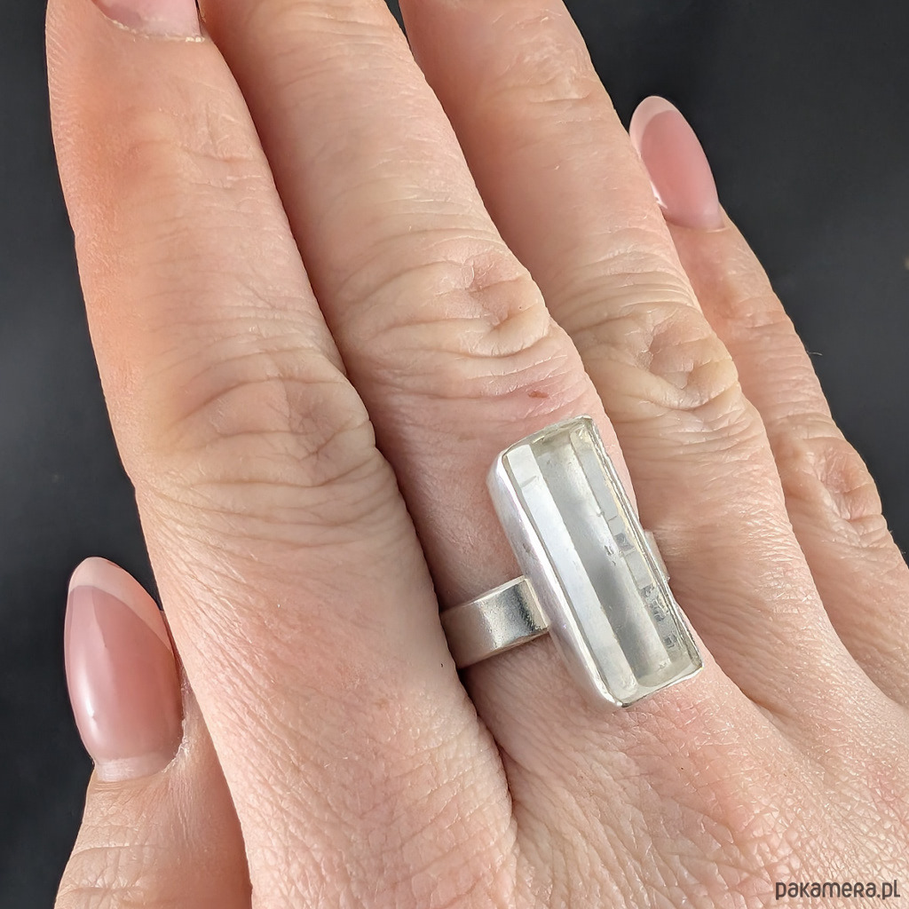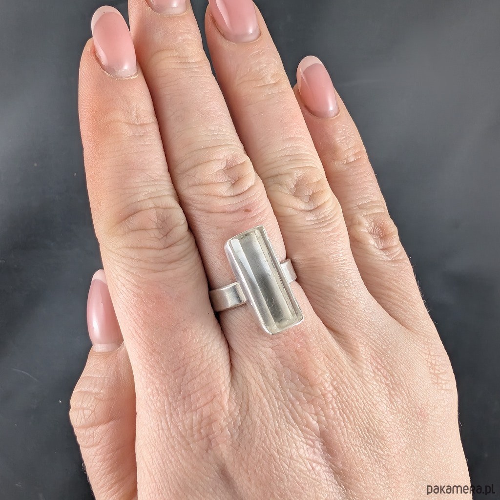 Rozmiar jubilerski 16, możliwe powiekszenie na rozmiar max 17. Oprawa 21 x 9 mm.