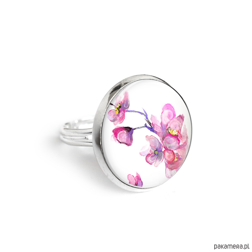 Grafika ukryta w prostym pierścieniu pod osłoną przeźroczystego półokrągłego szkiełka.