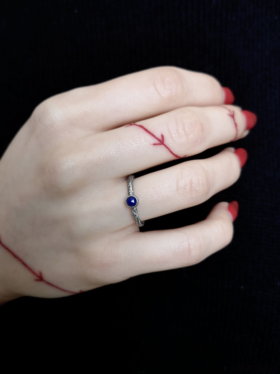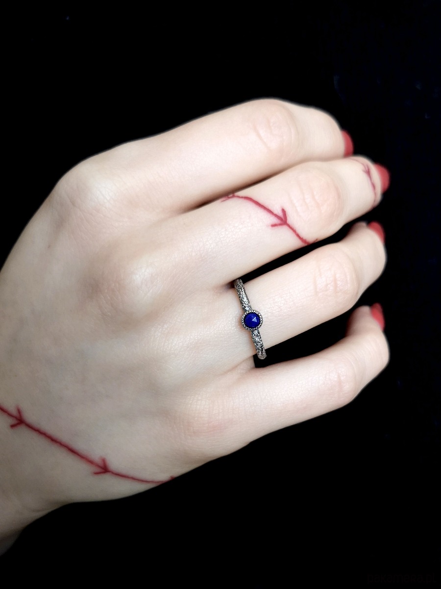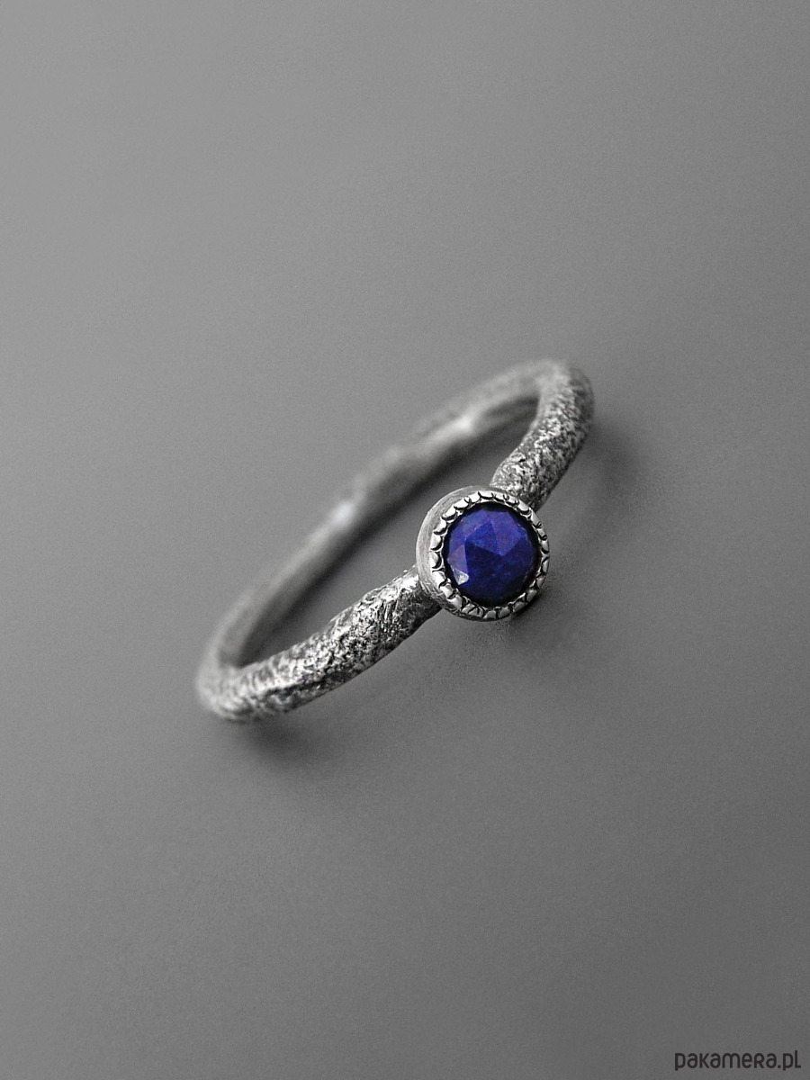 Unikatowy surowy pierścionek z Lapis Lazuli - wykonany z flamowanego srebra 925. Patynowany i szczotkowany.