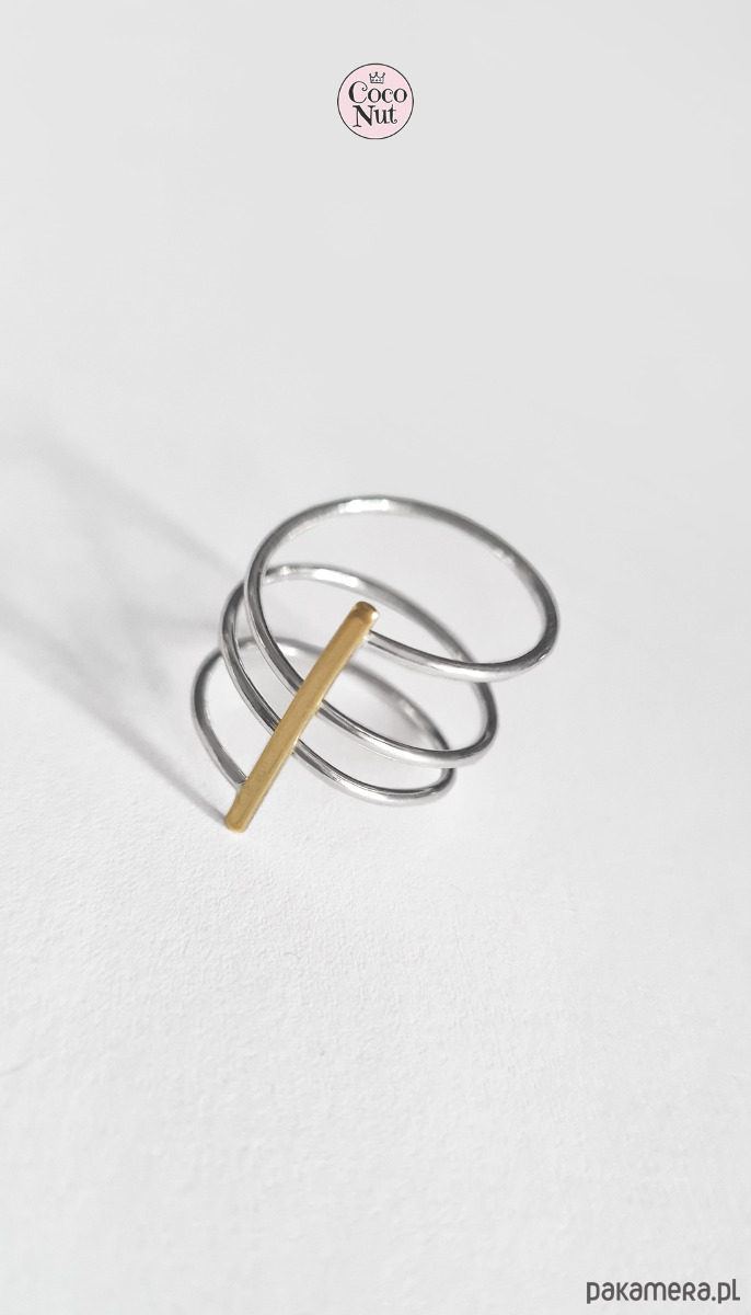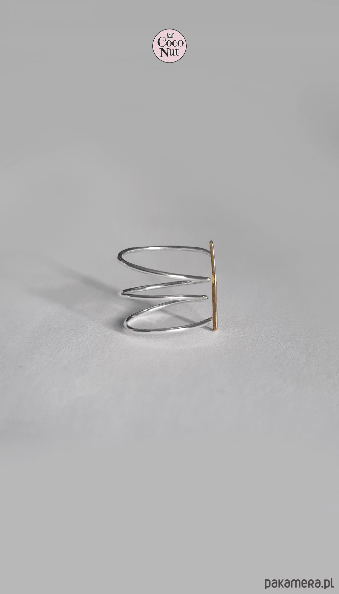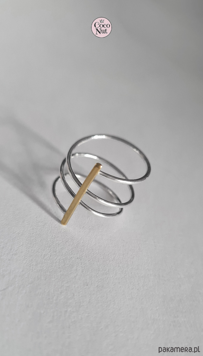 Pierścionek ze srebra z mosiężną belką - pierścionek w kształcie sprężyny, szerokość całkowita ok. 1,8 cm