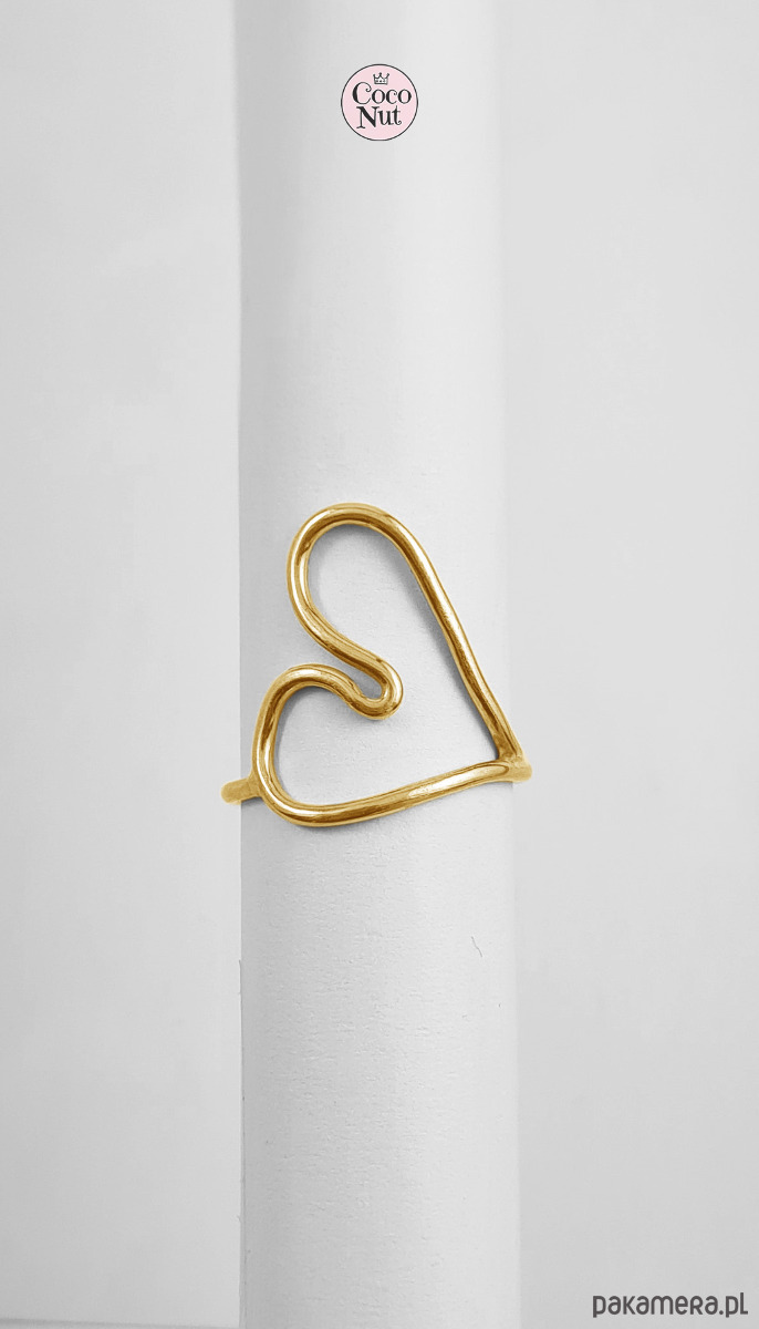Pierścionek serce, wykonany ręcznie ze srebra, srebro próby 925 pokryte cienką warstwą złota (złocenie galwaniczne).