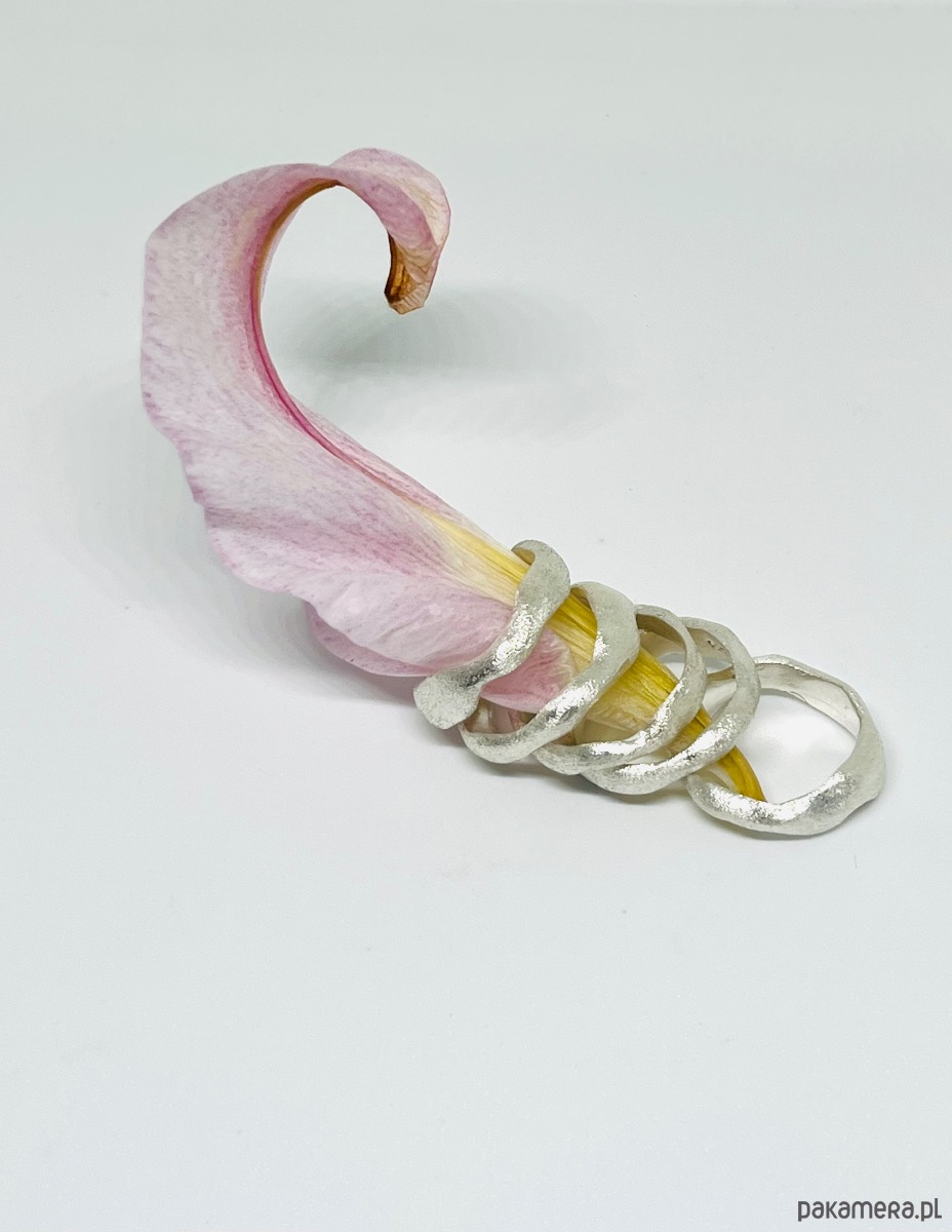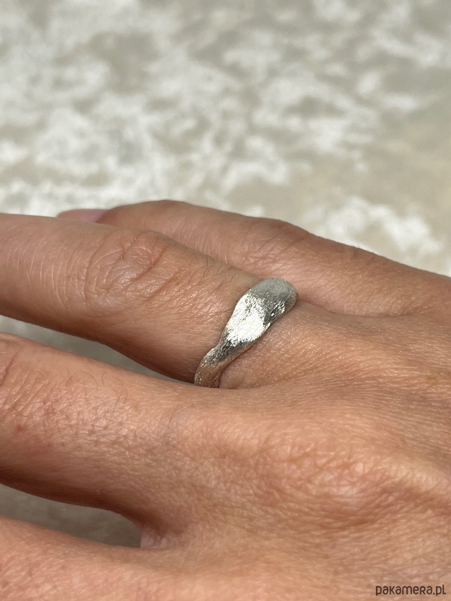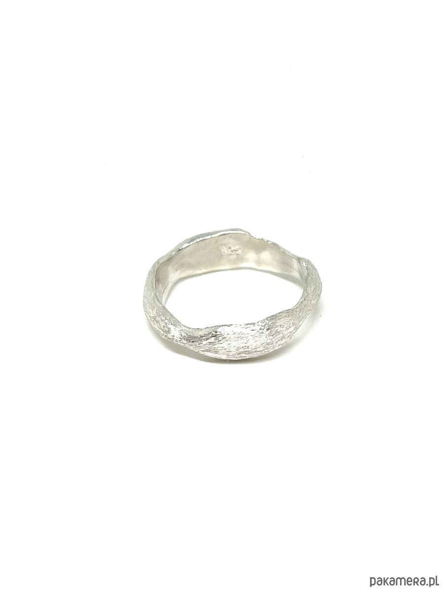 Ręcznie wykonany pierścionek w próbie srebra 925. Forma i tekstura inspirowane są refleksem światła księżyca na wodzie. Dostępne w dowolnym rozmiarze na zamówienie.