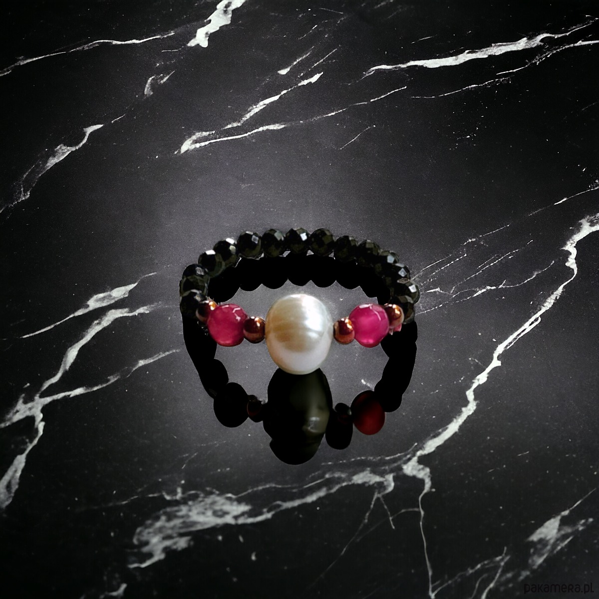 Pierścionek :: magenta : perła, spinel, agat